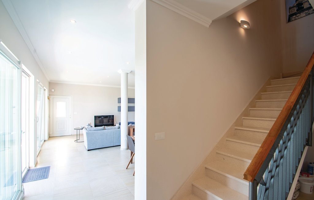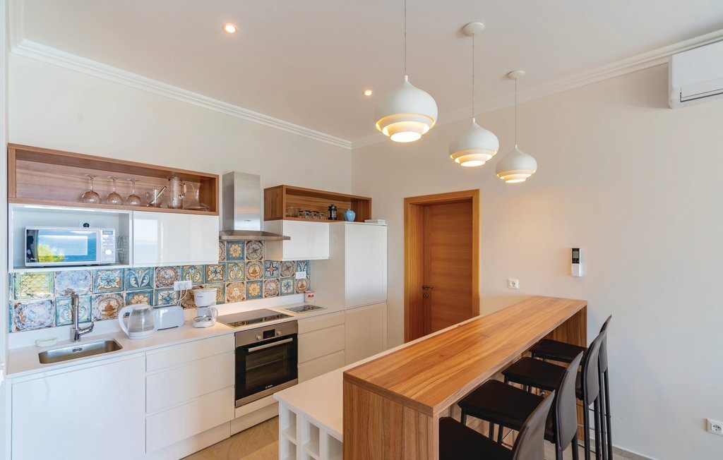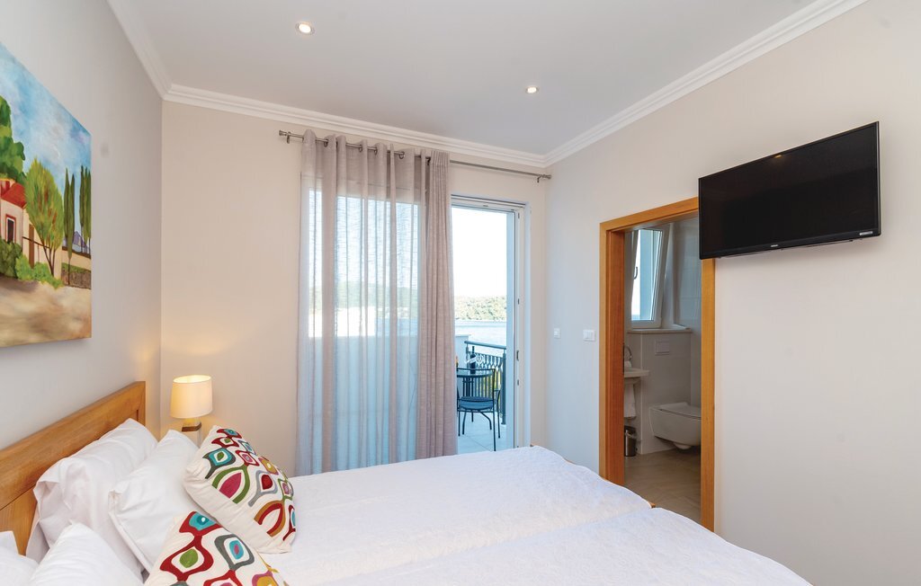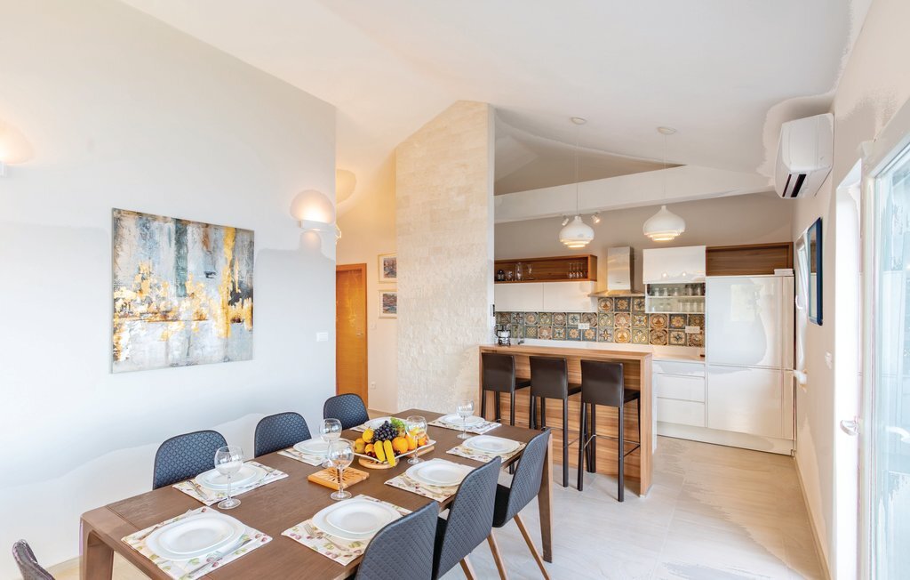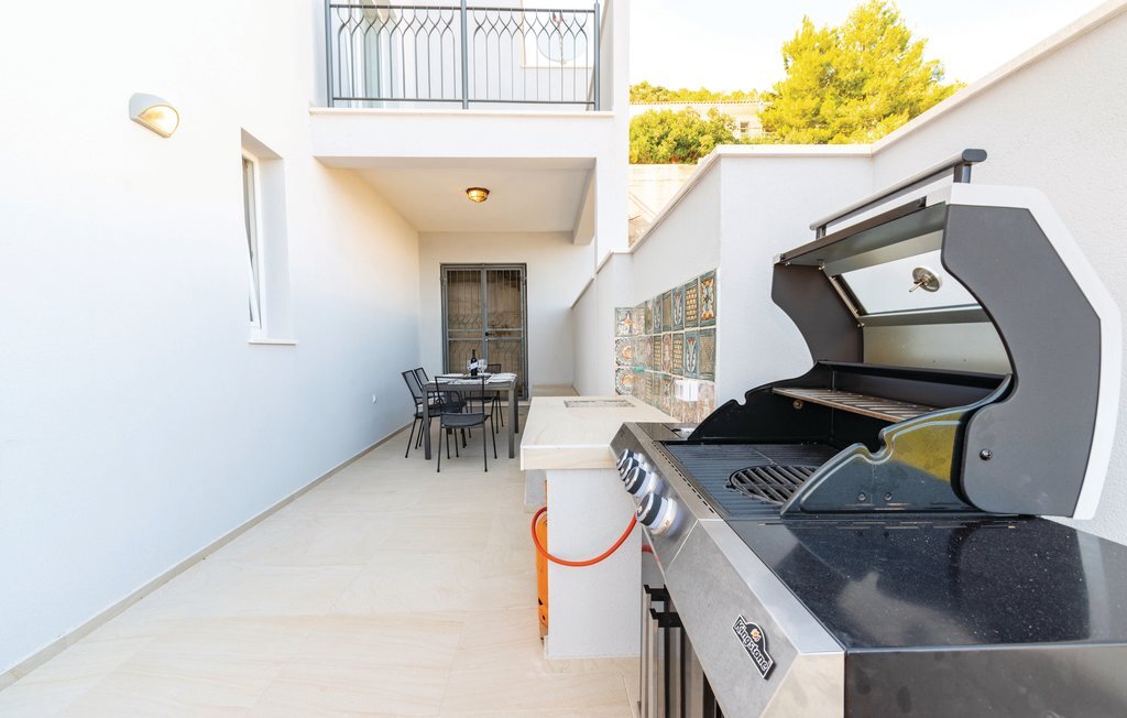 Cette magnifique maison de vacances avec piscine est située directement au bord de la mer, dans la petite baie de Vinaac, près de la ville de Brna, sur l'île de Korula. Des lignes claires, des détails luxueux et des matériaux de qualité complètent l'image globale élégante de cette villa. Les pièces se répartissent sur le rez-de-chaussée avec un salon spacieux et une cuisine entièrement équipée, une chambre à coucher principale avec salle de bain ainsi qu'une belle terrasse avec piscine et barbecue extérieur. Des escaliers intérieurs mènent au premier étage avec quatre chambres à coucher climatisées et leurs propres salles de bains ainsi que des sorties sur des balcons avec vue sur la mer. Au deuxième étage se trouvent encore une belle cuisine avec salon ainsi qu'une terrasse avec vue sur la mer. Le domicile est situé à quelques mètres de la mer, où des marches mènent à la plateforme en béton où vous pouvez vous baigner.