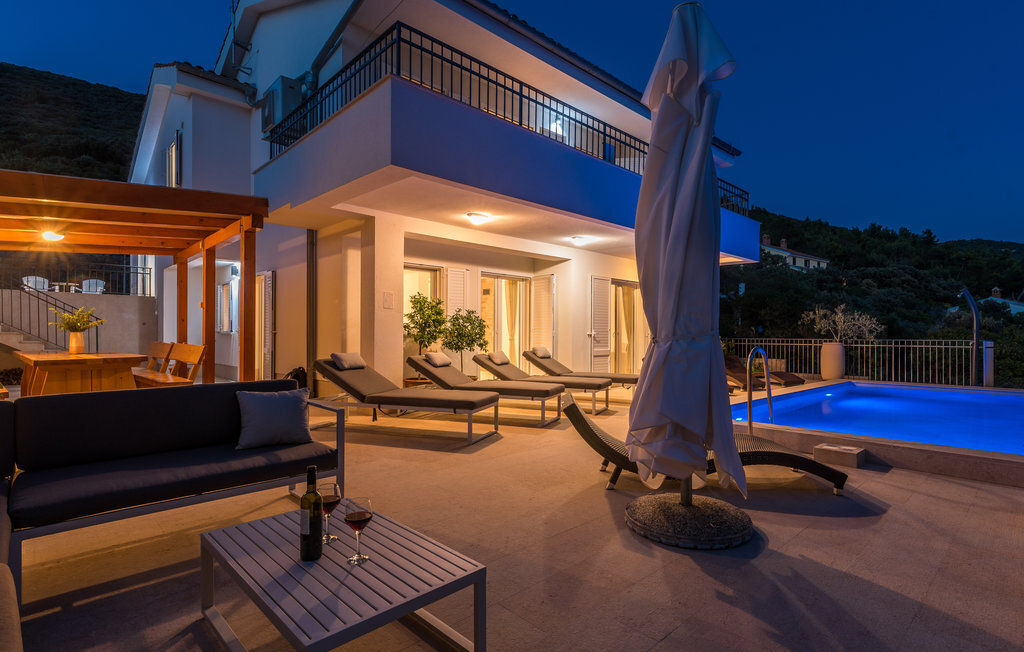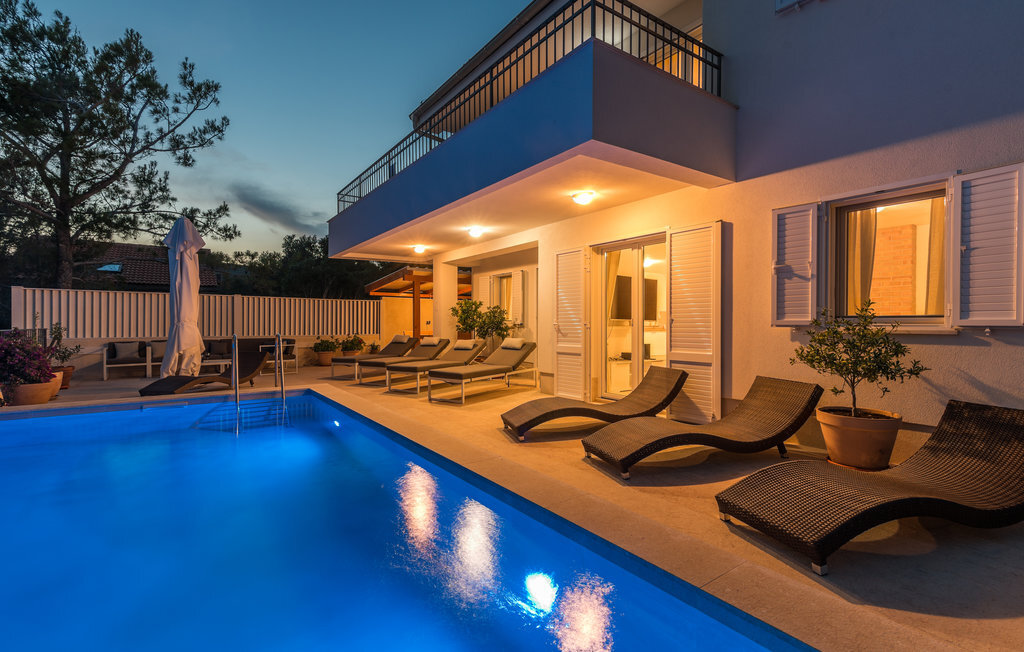 Bien-être à l'extérieur : Location de vacances disposant de chaises-longues et d'un ou plusieurs équipements tels que piscine extérieure, jacuzzi extérieur, lit à baldaquin de jardin etc...