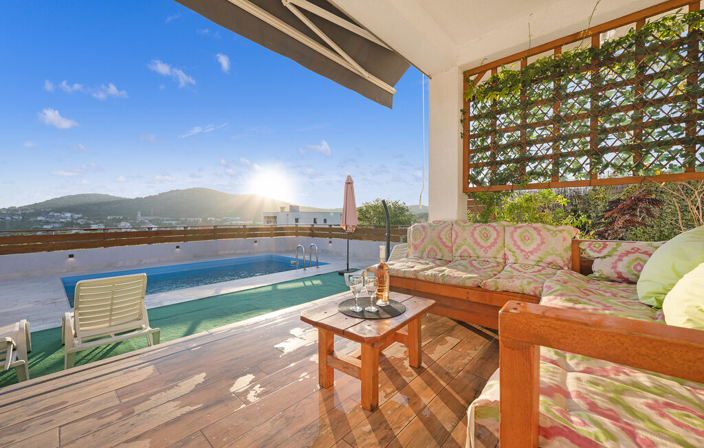 Cette maison de vacances aménagée avec goût et dotée d'une piscine privée se trouve dans le petit village de Bilice, près de la ville d'ibenik. Sur le terrain bien entretenu, une piscine vous attend, qui vous promet un rafraîchissement rafraîchissant pendant les chaudes journées d'été. Ce domicile est idéal pour ceux qui souhaitent passer des vacances reposantes, loin de l'agitation de la ville et dans un environnement rural. Cependant, les plages les plus proches et la ville d'ibenk ne sont qu'à quelques minutes en voiture. Une expérience naturelle particulière est une visite du parc national de Krka avec ses impressionnantes chutes d'eau. Profitez également de l'occasion pour faire un tour en bateau jusqu'au monastère franciscain sur l'île de Visovac.