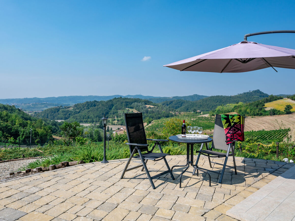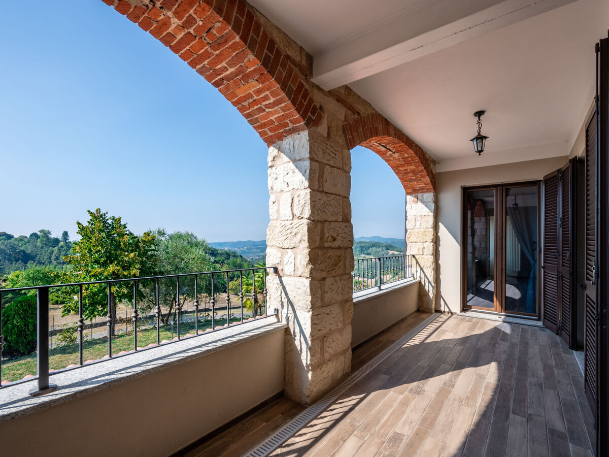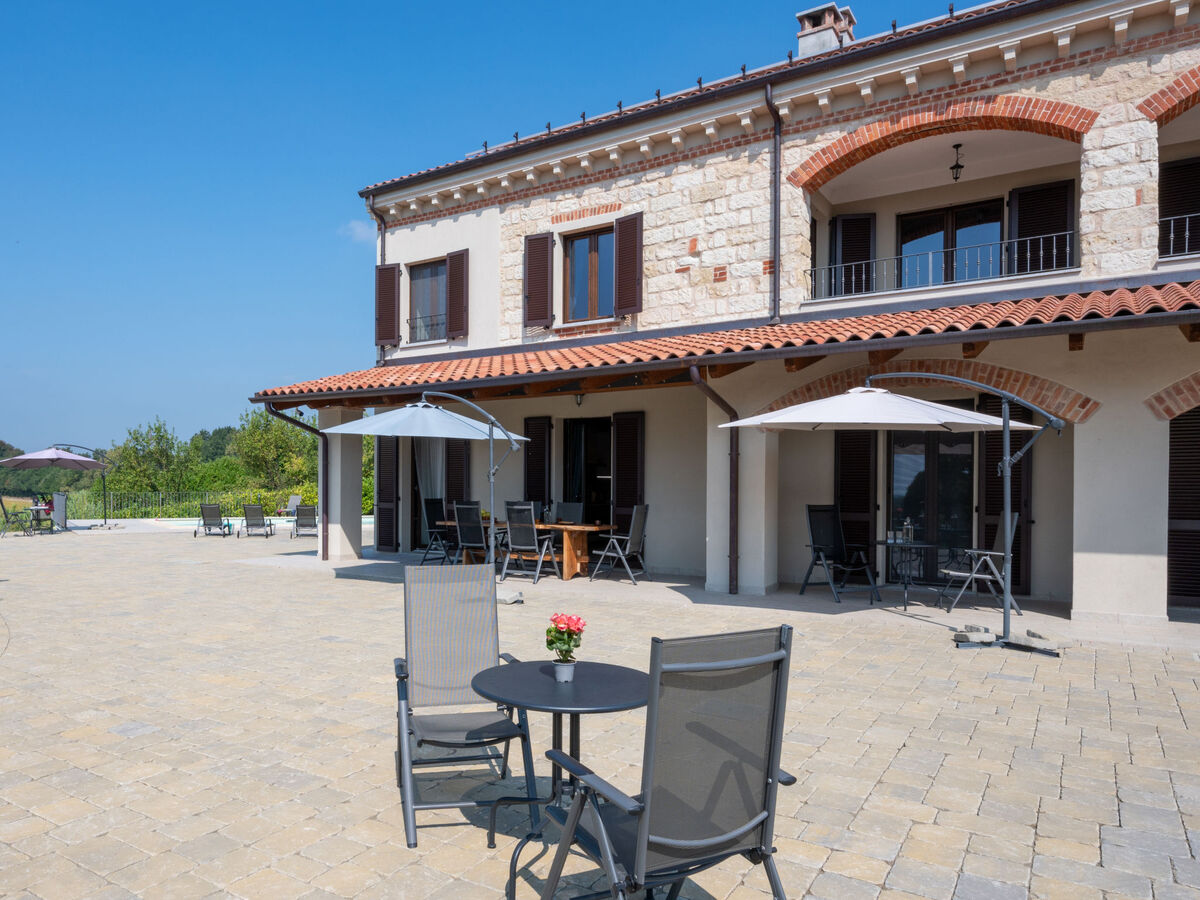 À 5 km du centre de Moncalvo, en bordure de la localité, à 200 m du centre de Ponzano Monferrato, à 25 km du centre d'Asti, situation tranquille, ensoleillée, surélevée sur une colline, dans la verdure.