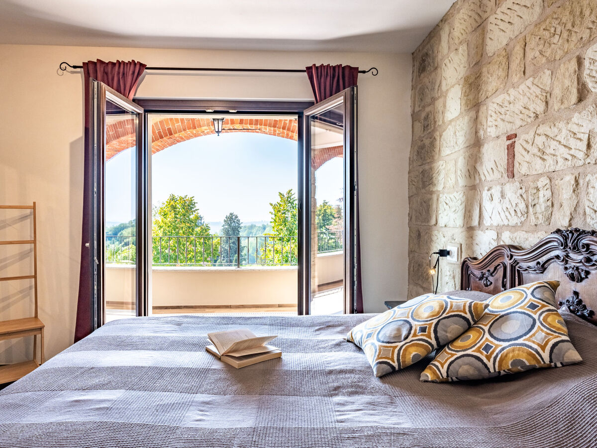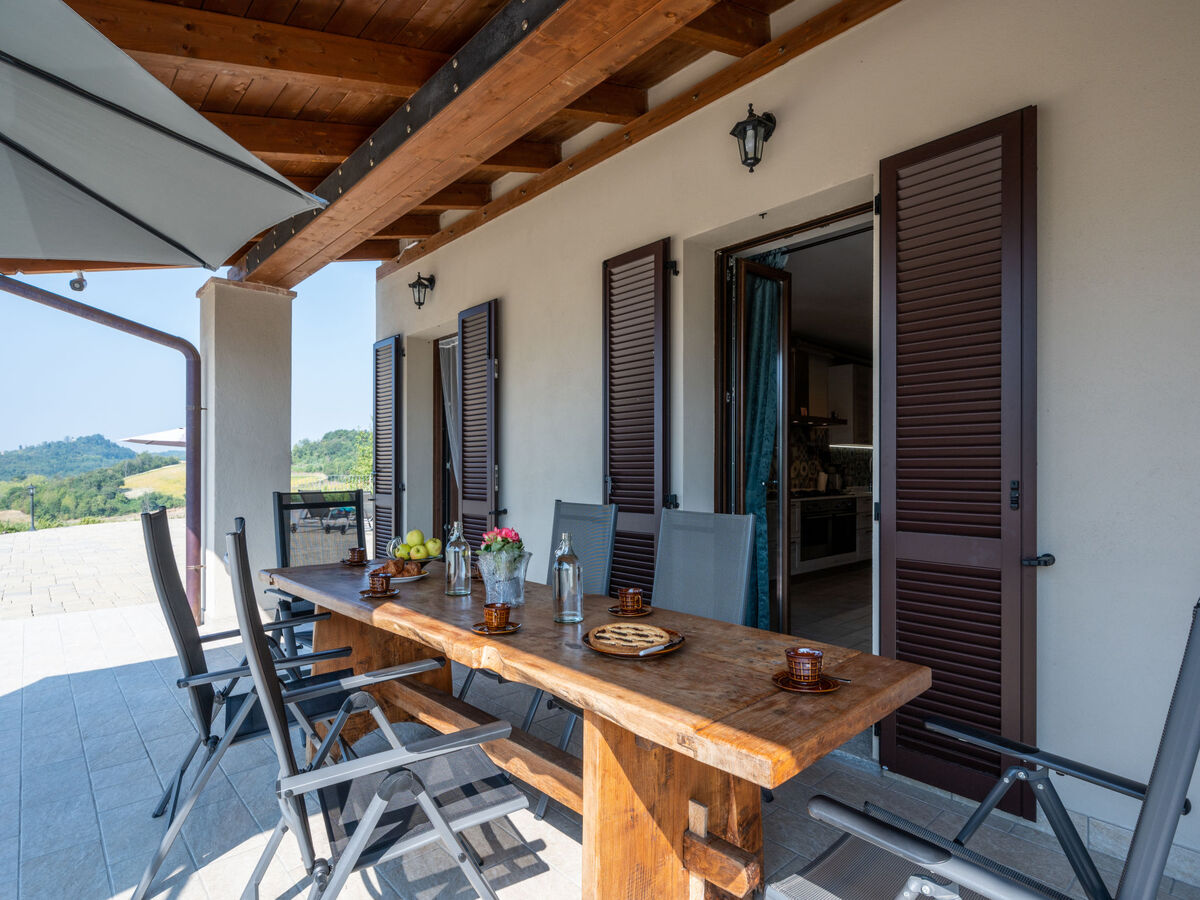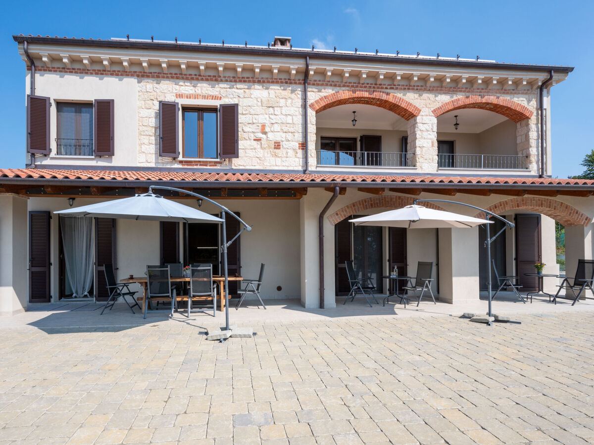 À 5 km du centre de Moncalvo, en bordure de la localité, à 200 m du centre de Ponzano Monferrato, à 25 km du centre d'Asti, situation tranquille, ensoleillée, surélevée sur une colline, dans la verdure.