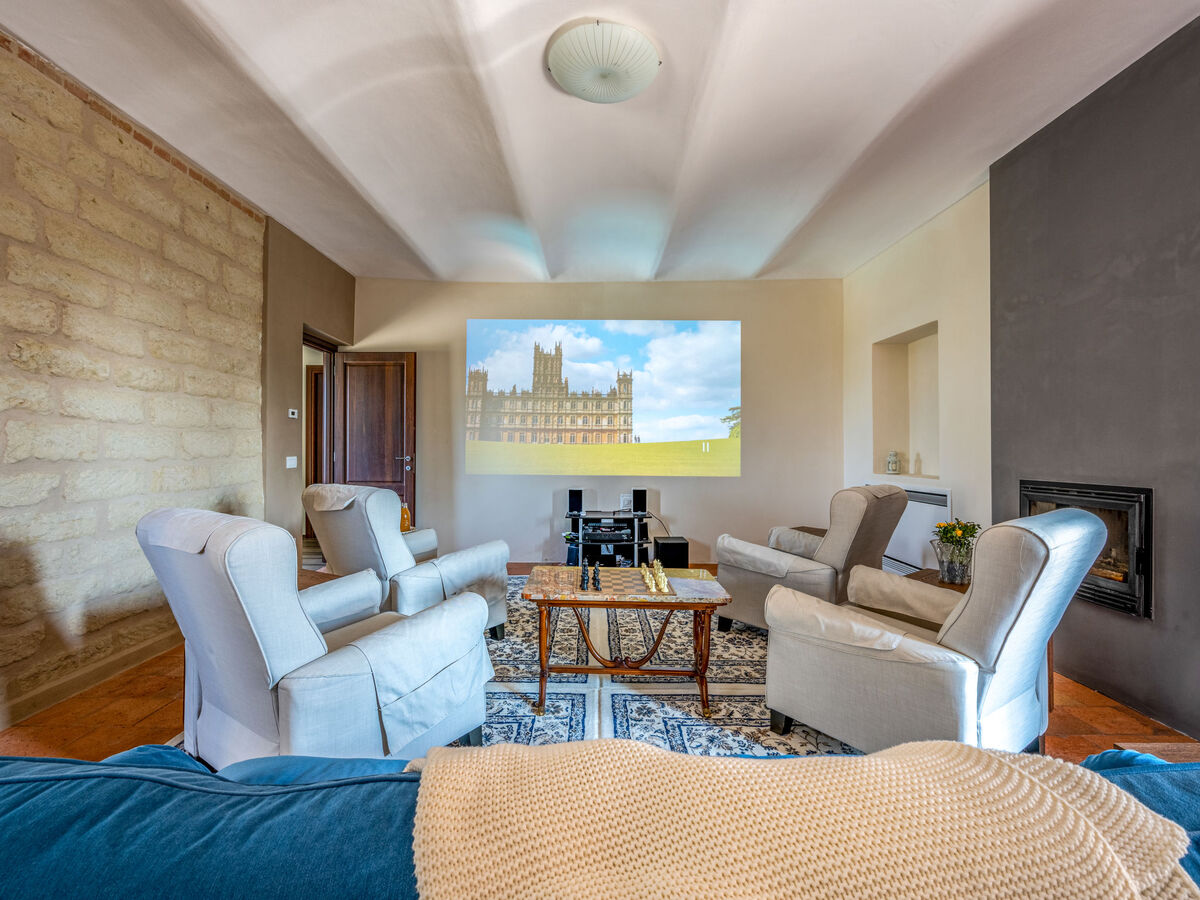 À l'étage supérieur: séjour avec cheminée.