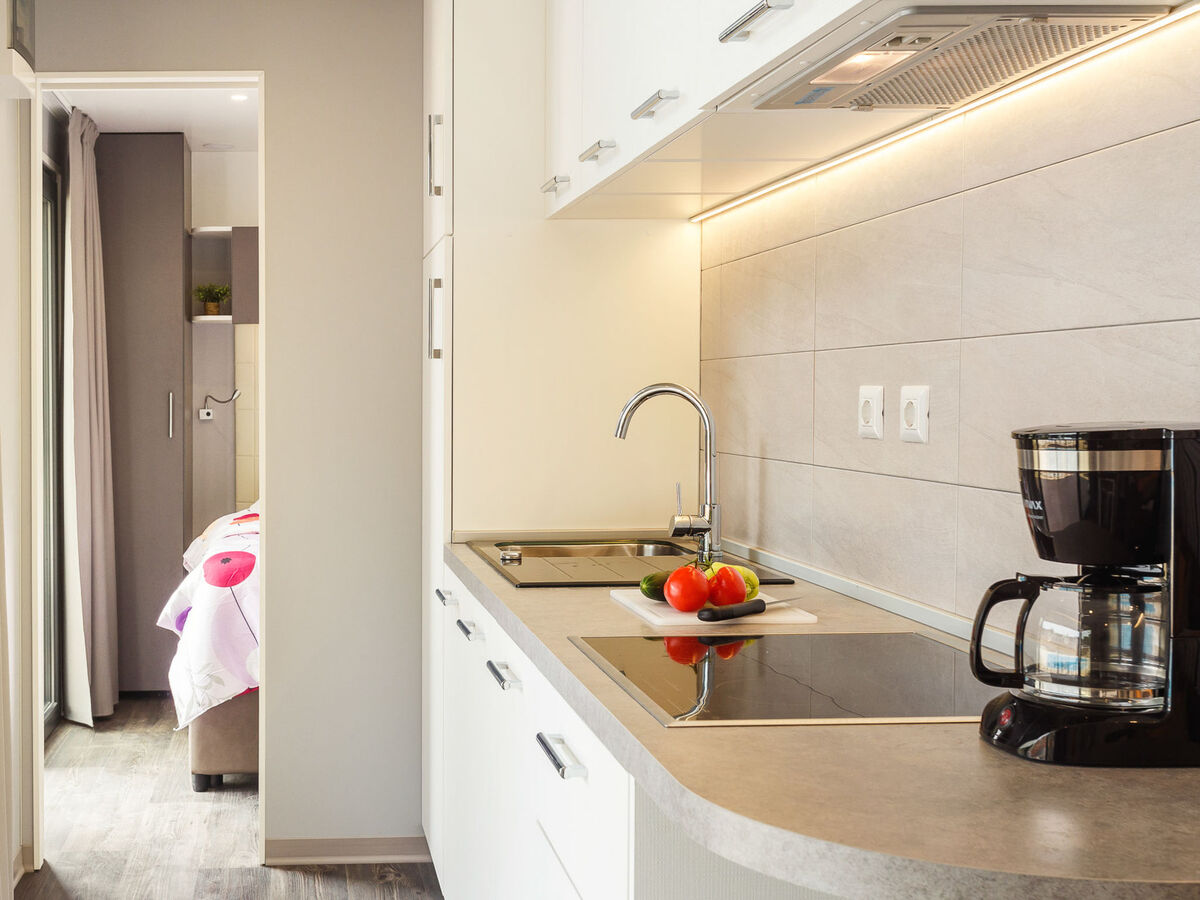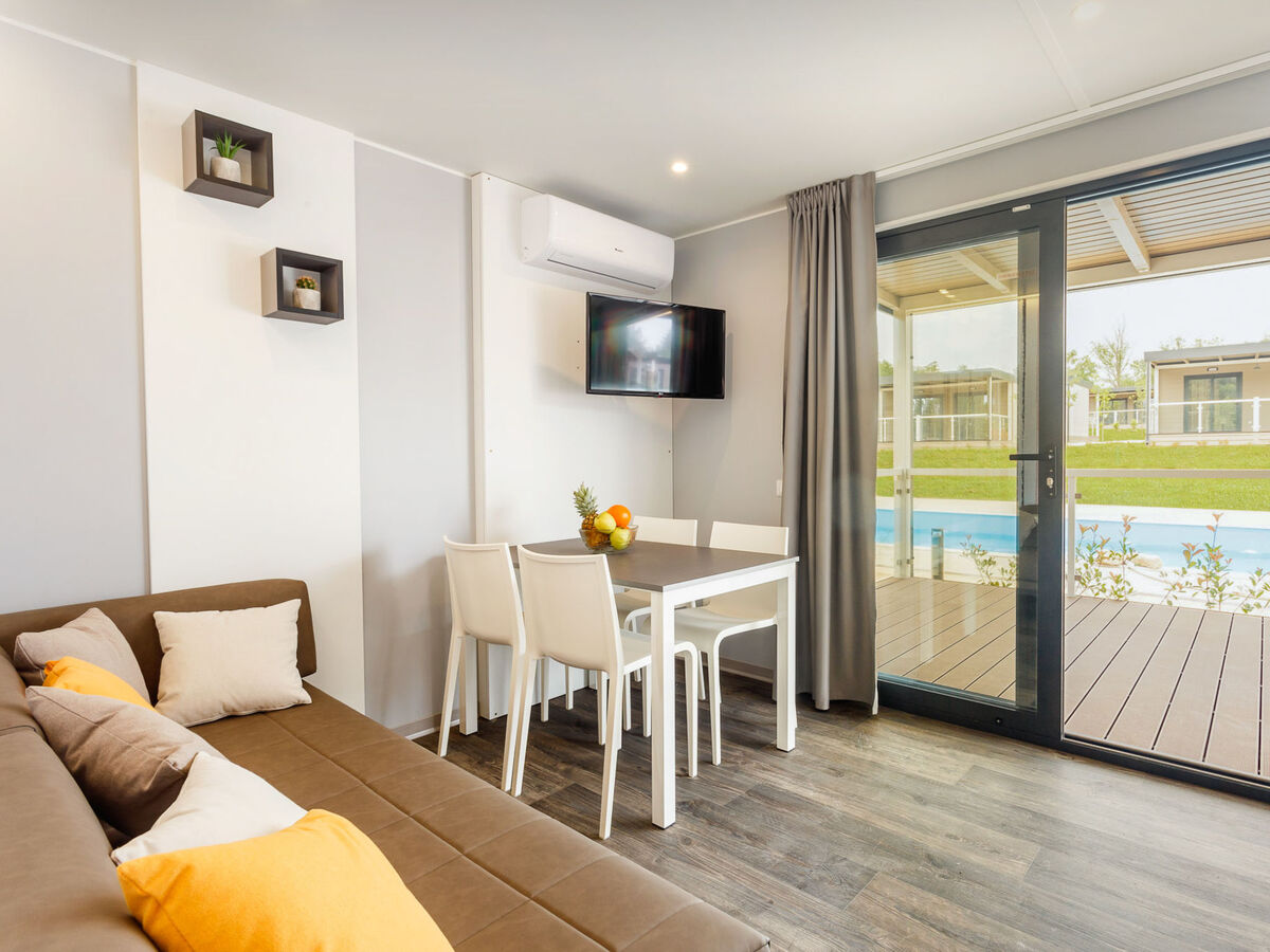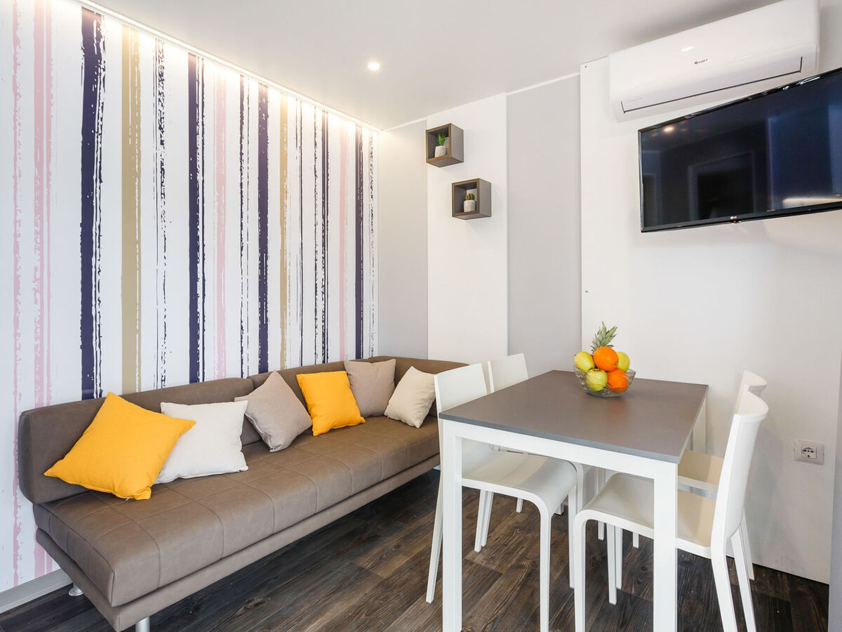 Séjour/salle à manger avec 1 divan-lit (70 cm, longueur 150 cm), TV (satellite) (écran plat), air-conditionné.