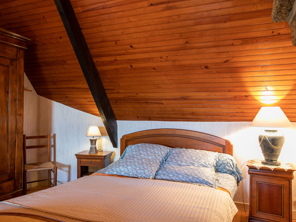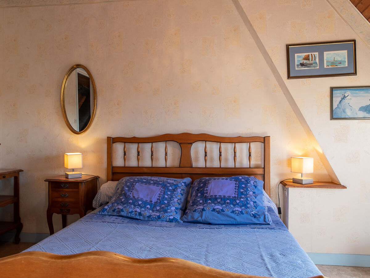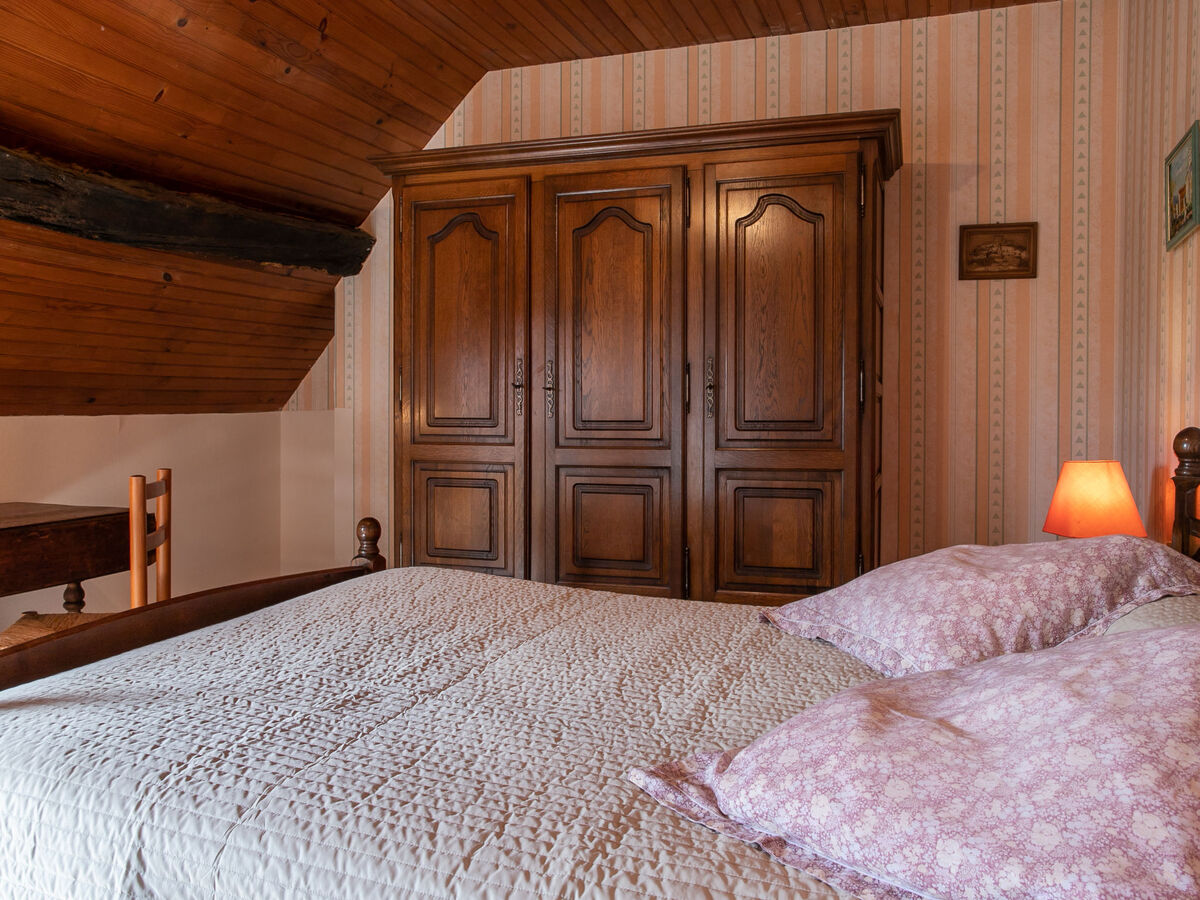 2ème étage: (escalier en colimaçon) 1 chambre avec 1 grand-lit (140 cm, longueur 190 cm), bain/WC.