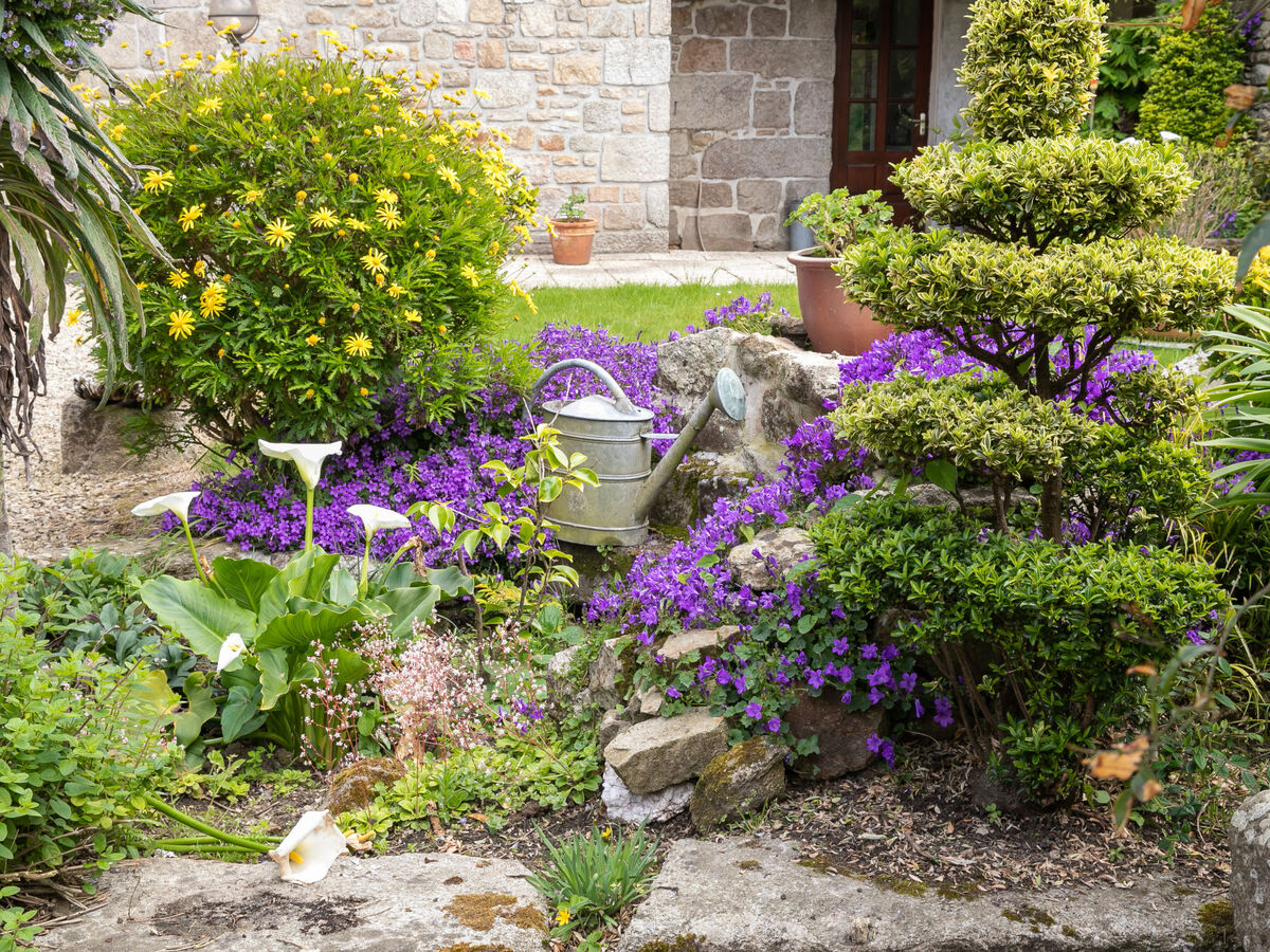 A usage privé: terrain 200 m2, jardin avec plantes.
