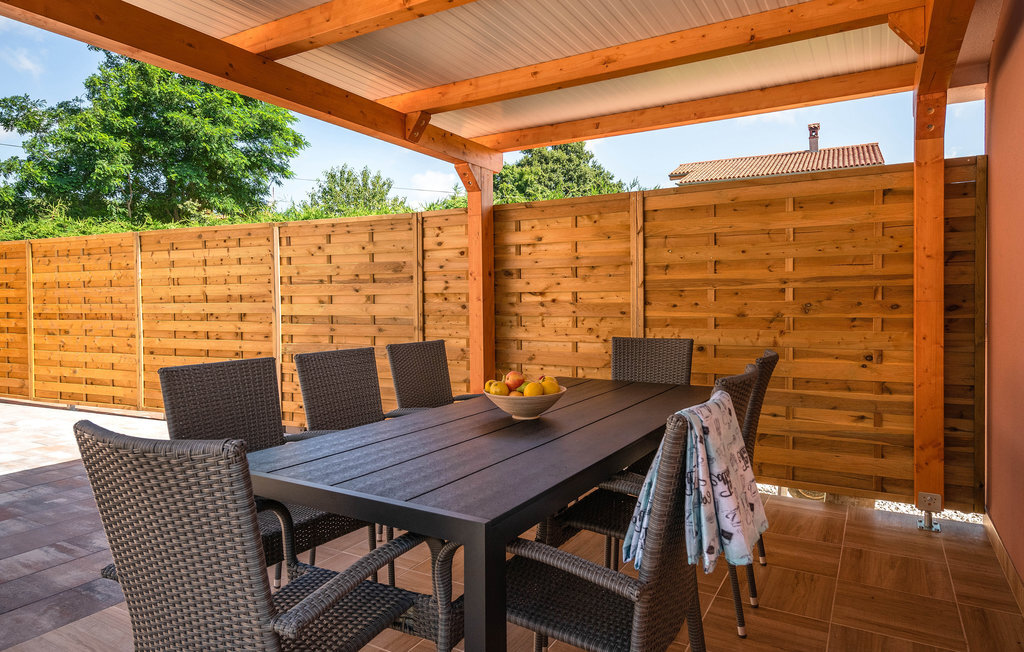 Cette maison de vacances avec piscine se trouve au sud de la péninsule d'Istrie, dans une localité appelée Radeki Glavica. Au rez-de-chaussée se trouvent une chambre à coucher, une salle de bain, un salon et une cuisine avec coin repas. Au premier étage se trouvent trois autres chambres à coucher et une salle de bain. En outre, trois terrasses et un barbecue sont à votre disposition, où vous pourrez préparer vos spécialités préférées.