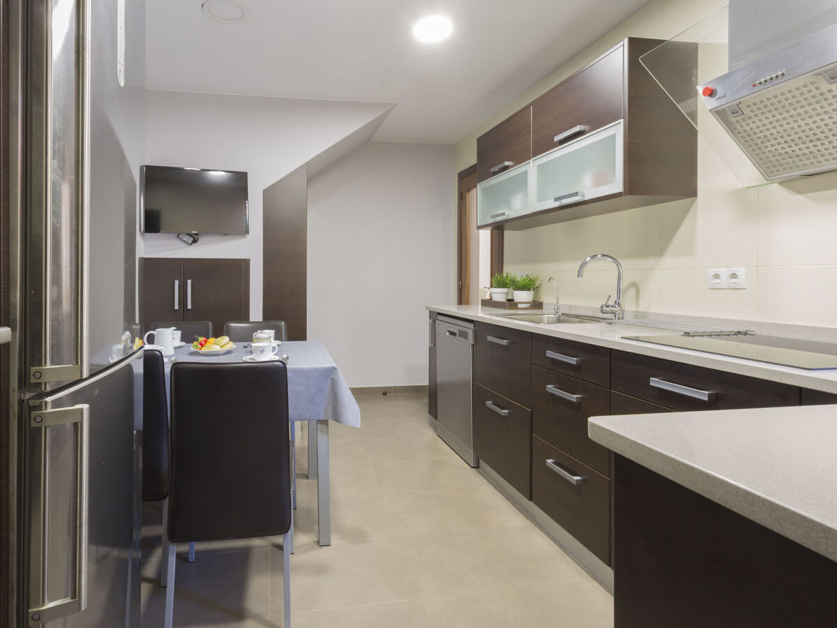 Cuisine (lave-vaisselle, 3 plaques à induction, micro-ondes, congélateur, cafetière électrique).