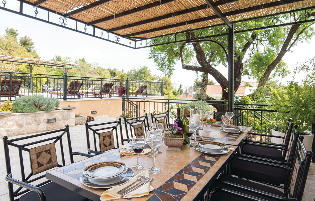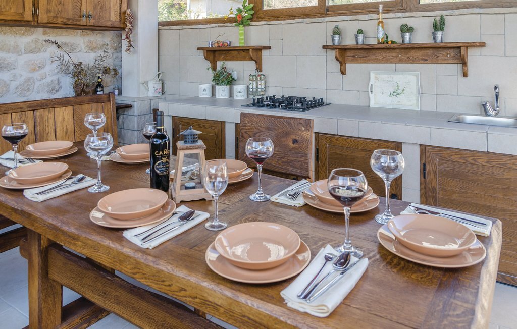 Cette maison traditionnelle en pierre dans le petit village de Ruskovici est située au-dessus du village d'Orebic. Des meubles en bois de style rustique vous donnent ici un bon cadre pour vous détendre. Au rez-de-chaussée se trouvent la cuisine et le salon, tandis que les chambres sont situées aux étages supérieurs. Du premier étage, vous accédez à la cour et directement à la piscine, où se trouvent également une cuisine d'été entièrement équipée avec barbecue et une grande terrasse. Profitez de la vue époustouflante sur les montagnes de St. Ilijas'. Les enfants s'amuseront avec les jeux et, à côté du parking, il y a aussi une salle avec des appareils de fitness et une salle de bain. Visitez les restaurants et les plages adaptées aux enfants à proximité.