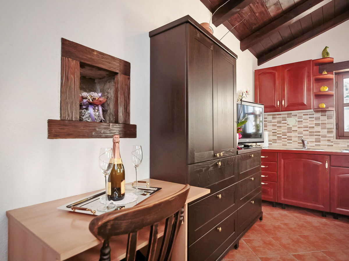 Cuisine ouverte (2 plaques de cuisson, micro-ondes, cafetière électrique).