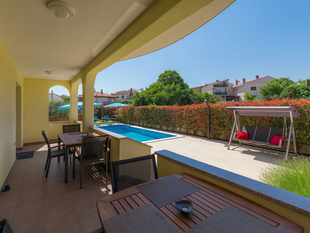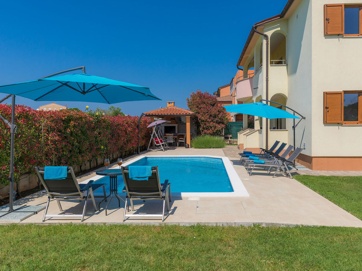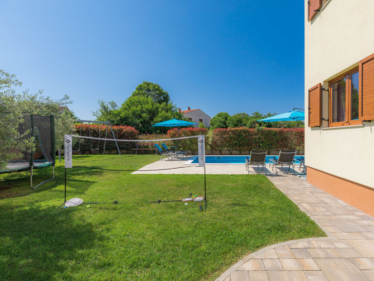 A usage privé: terrain 670 m2 (clôturé), petit jardin avec pelouse et plantes, piscine rectangulaire (8 x 4 m, profondeur 140 cm, disponibilité saisonnière: 09.Mai.
