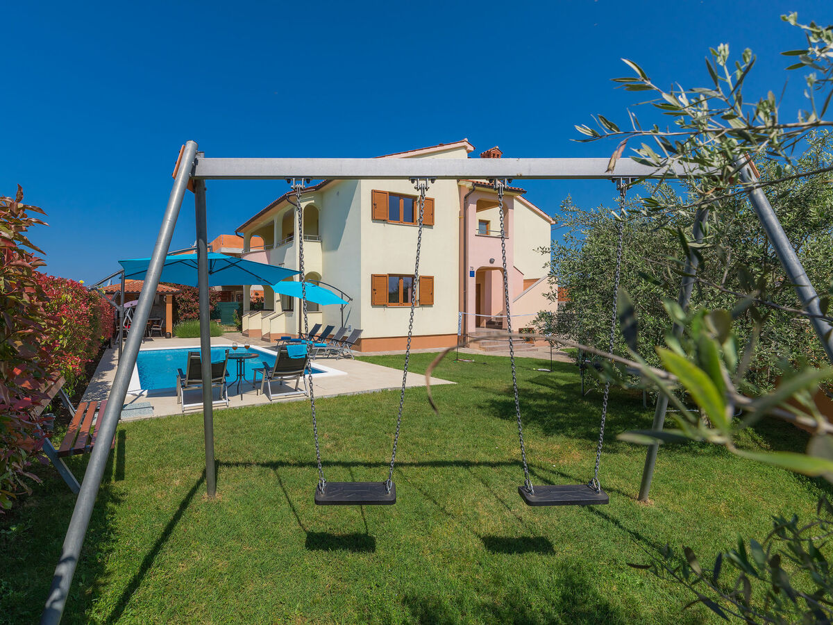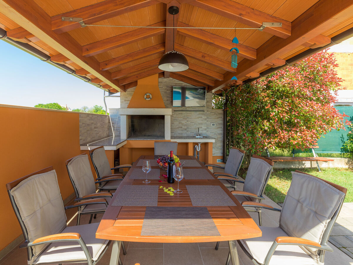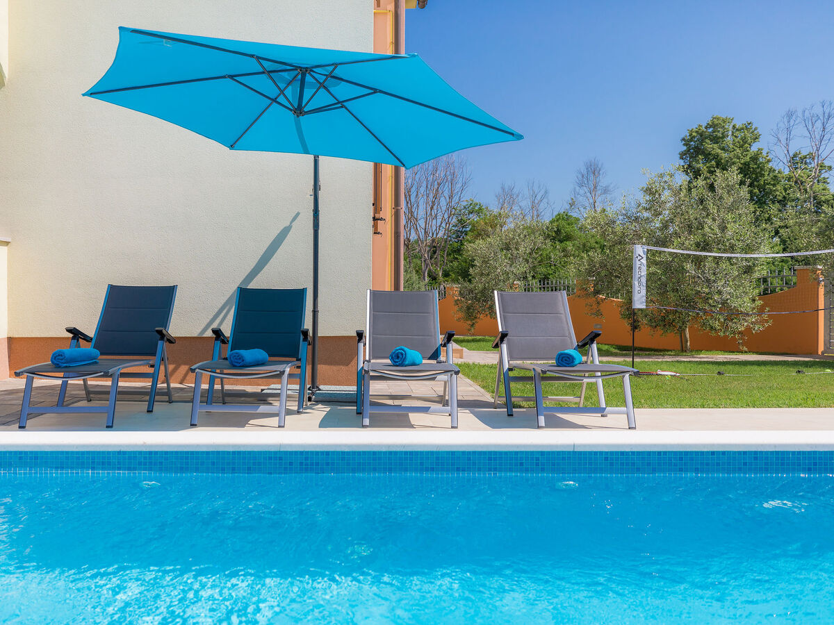 A usage privé: terrain 670 m2 (clôturé), petit jardin avec pelouse et plantes, piscine rectangulaire (8 x 4 m, profondeur 140 cm, disponibilité saisonnière: 09.Mai.