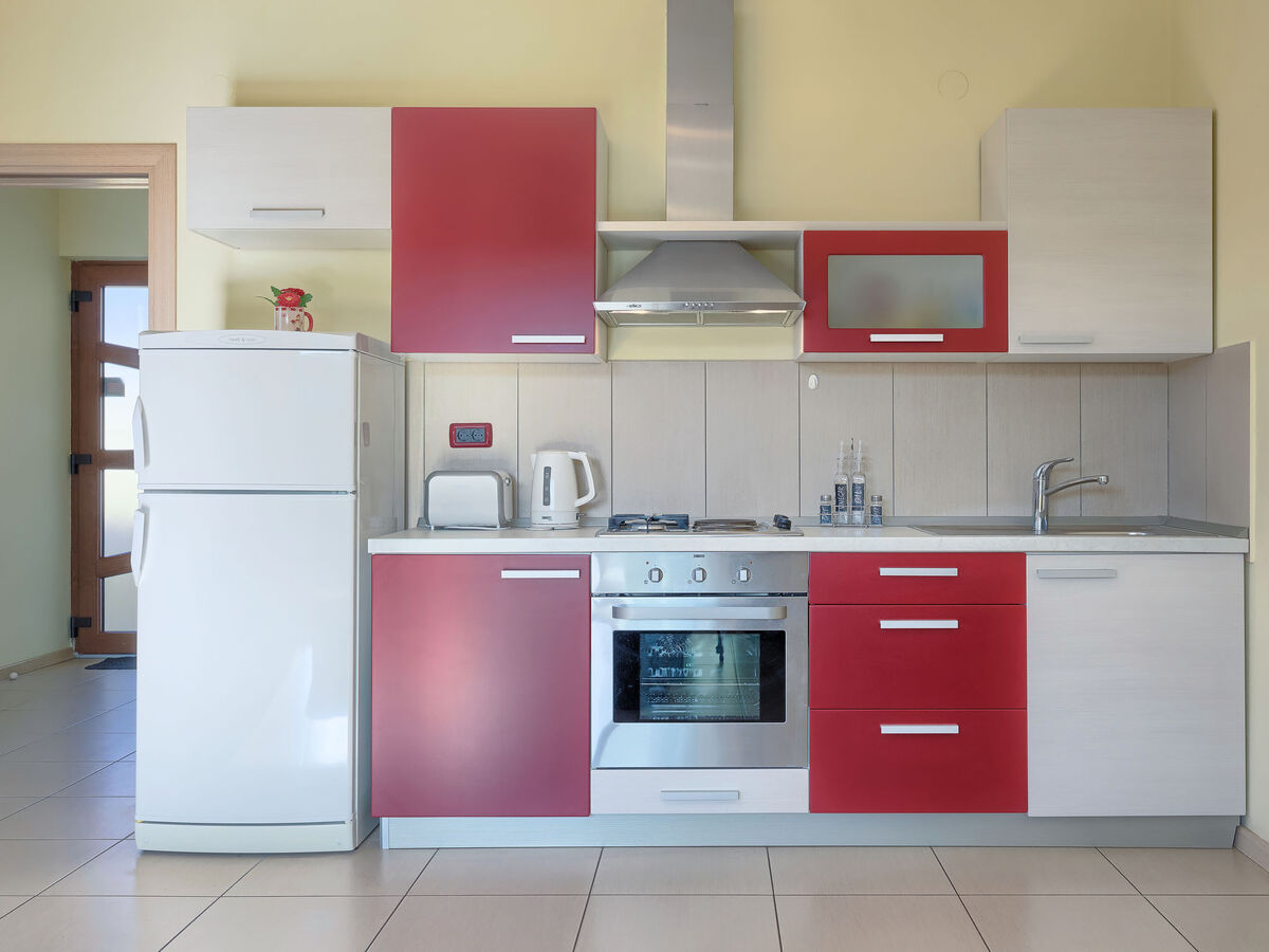 Cuisine ouverte (2 plaques de cuisson, four, congélateur, cafetière électrique).