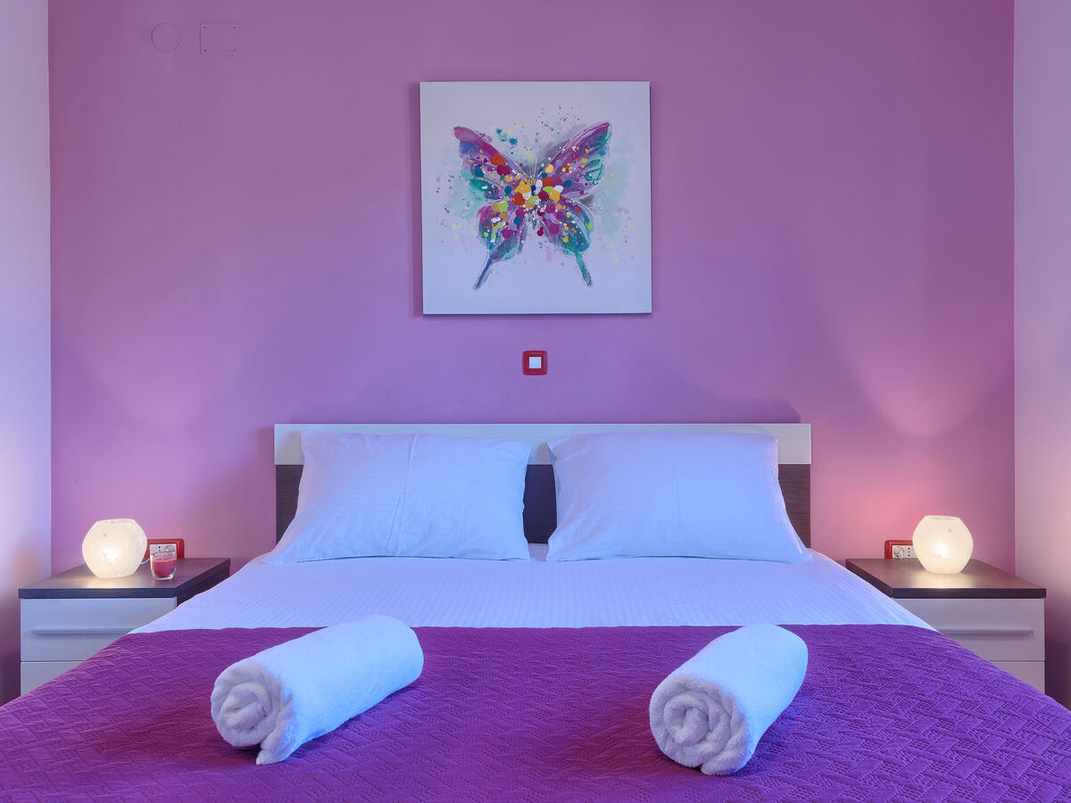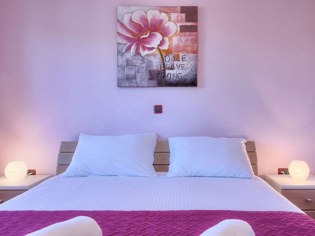 1 chambre avec 1 grand-lit (180 cm, longueur 200 cm).