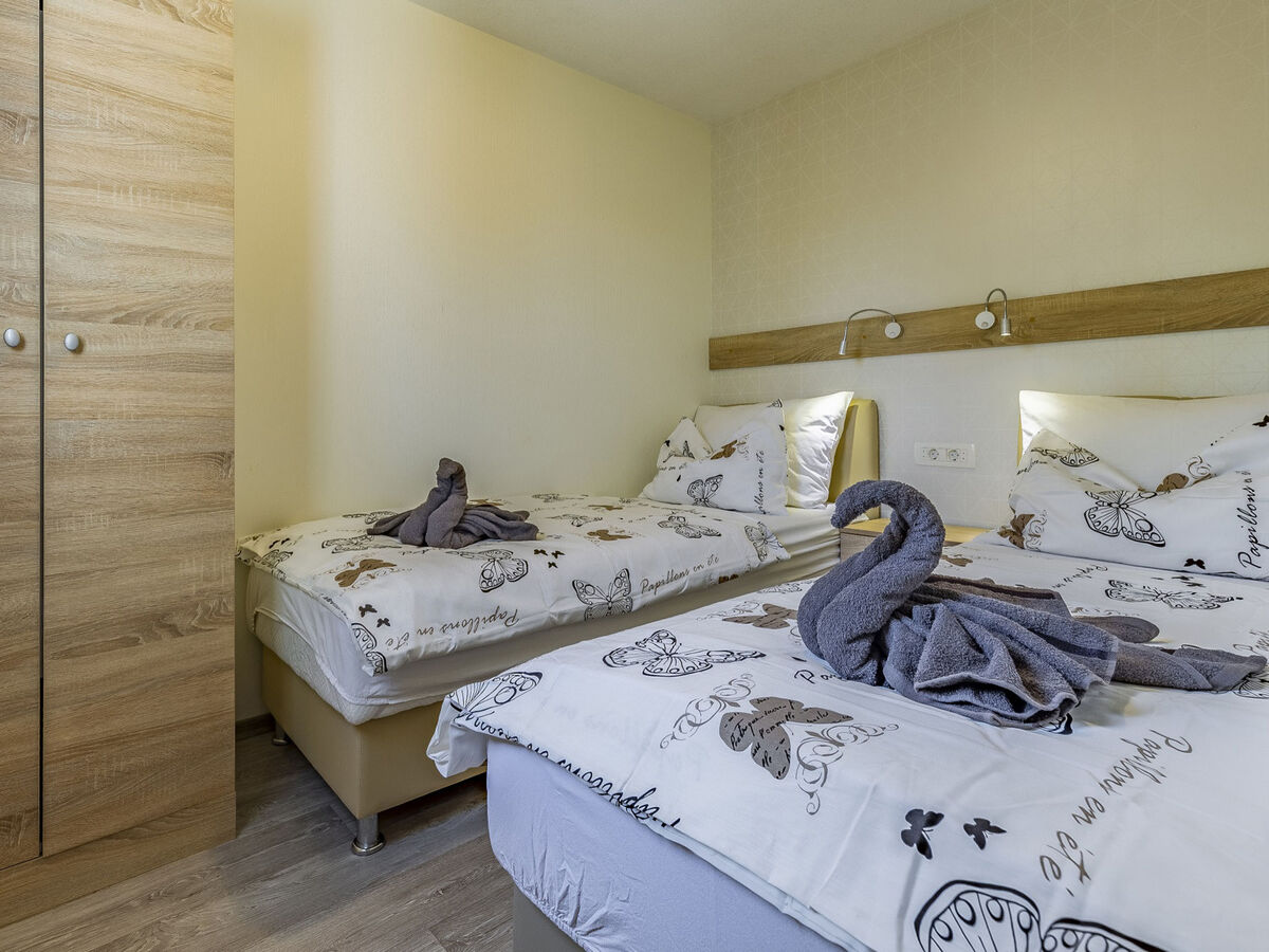 1 chambre avec 2 lits (90 cm, longueur 200 cm).