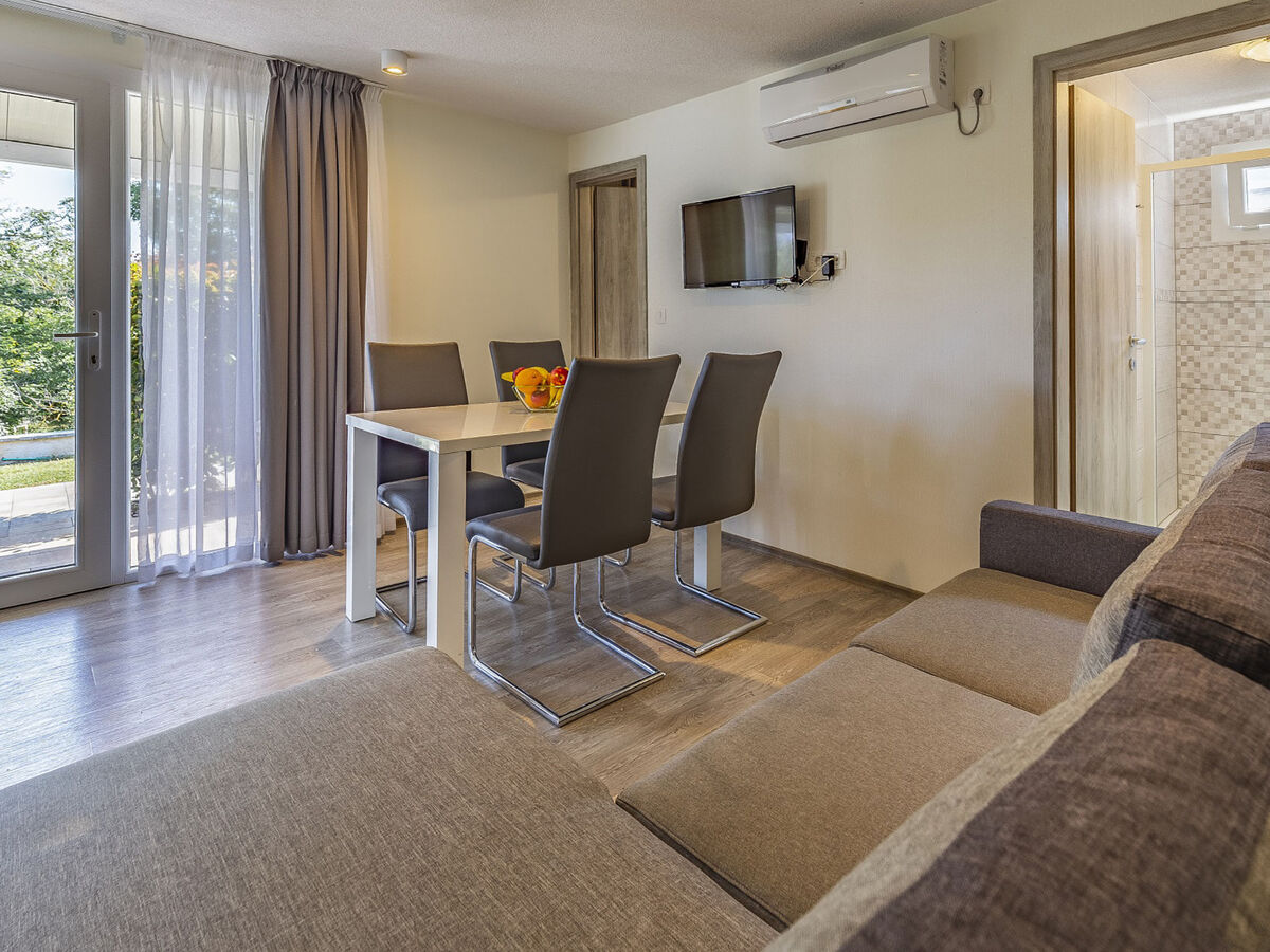 Séjour/salle à manger avec 1 divan-lit double (160 cm, longueur 200 cm), TV (satellite) (écran plat), air-conditionné.