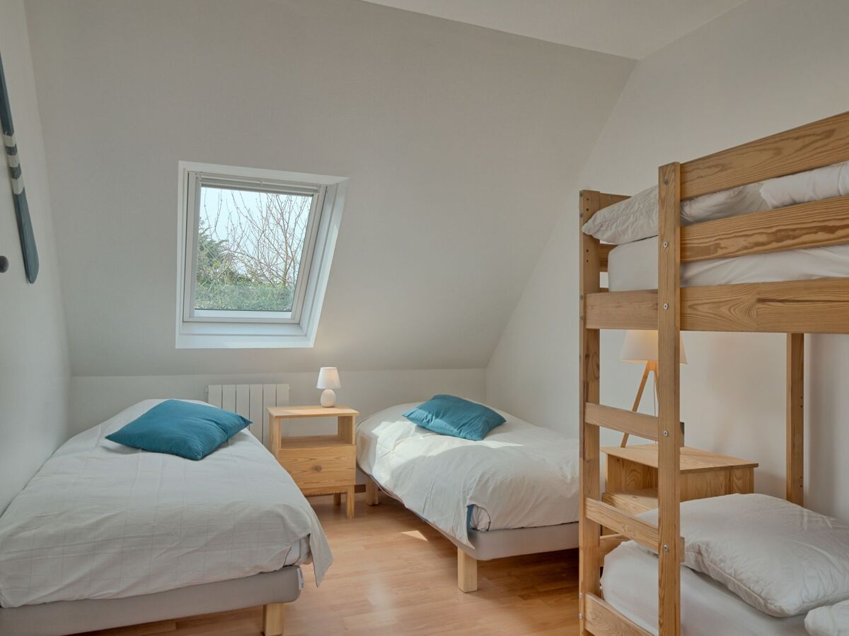 1 chambre, mansardée avec 2 lits (90 cm, longueur 190 cm), 1 x 2 lits superposés (90 cm, longueur 190 cm).