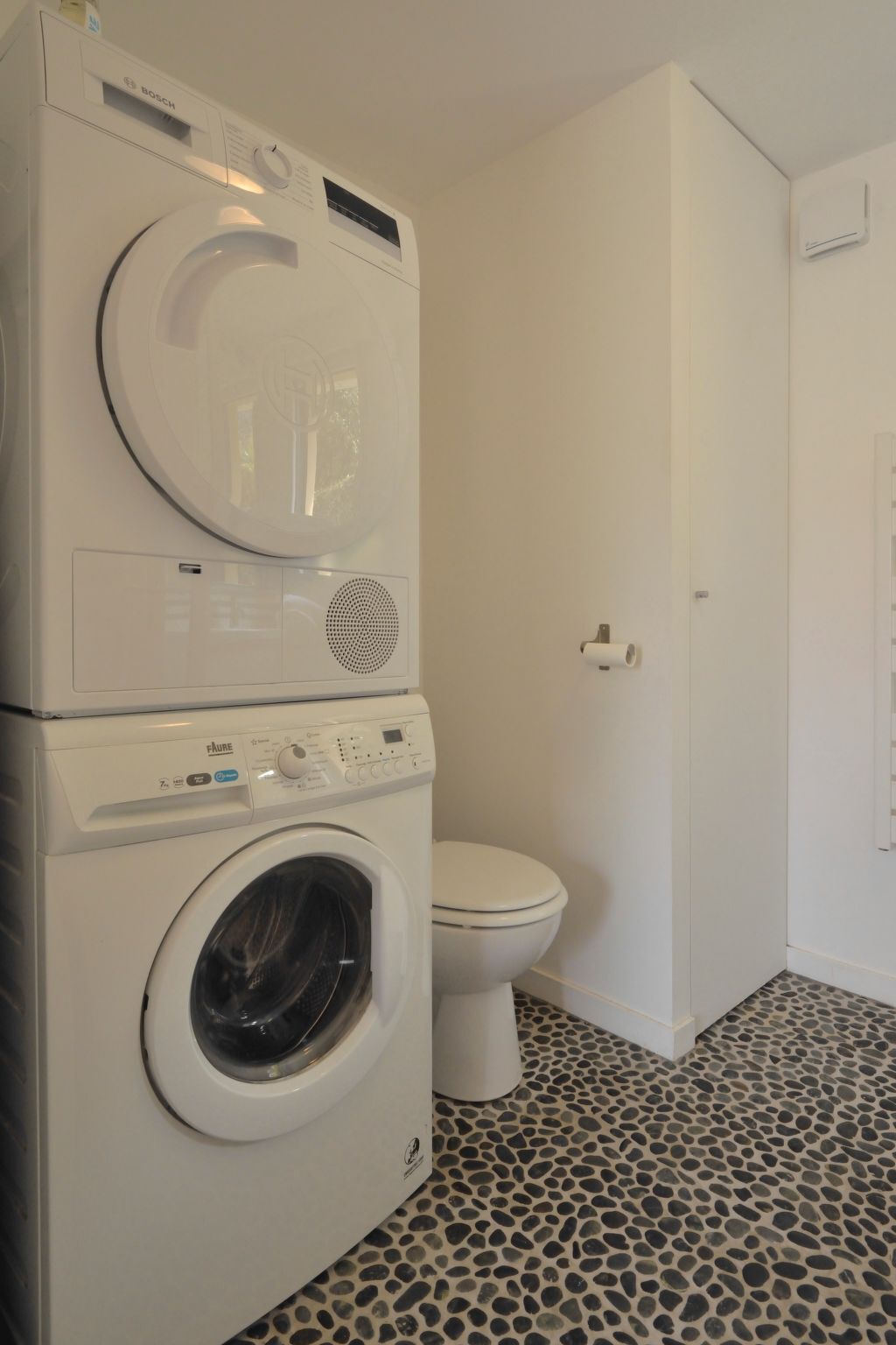 A disposition: lave-linge, sèche-linge, fer à repasser, chaise haute pour enfant, lit bébé.