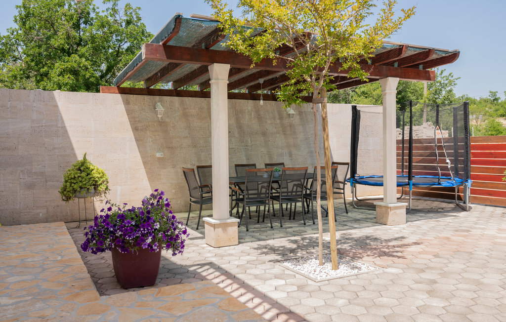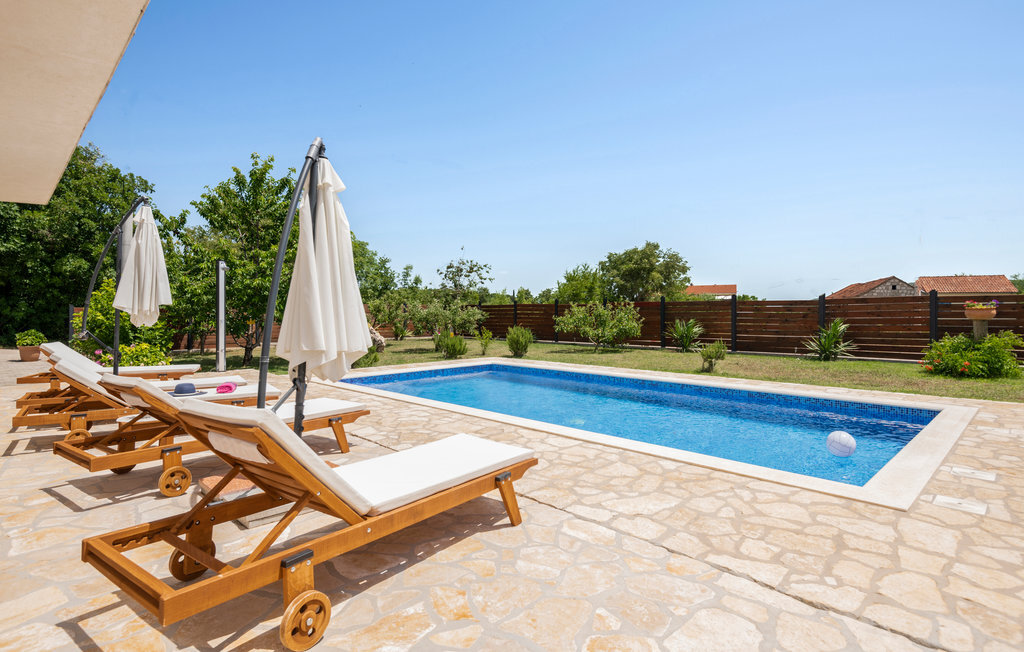 Cette belle maison de vacances joliment aménagée avec piscine se situe dans l'intérieur de la Dalmatie. Elle se compose de deux étages reliés par des escaliers intérieurs. Vous pourrez vous rafraîchir lors des chaudes journées d'été dans la magnifique piscine située devant la maison. Vous y trouverez également une cuisine d'été avec barbecue pour passer d'agréables soirées d'été en compagnie de vos proches et des jeux pour enfants, de sorte que les plus petits ne devraient pas s'ennuyer. Visitez les magnifiques plages de galets de la Riviera de Makarska et la ville d'Imotski avec ses nombreuses curiosités et manifestations pendant les mois d'été. Passez des vacances variées entourées d'une nature magnifique.