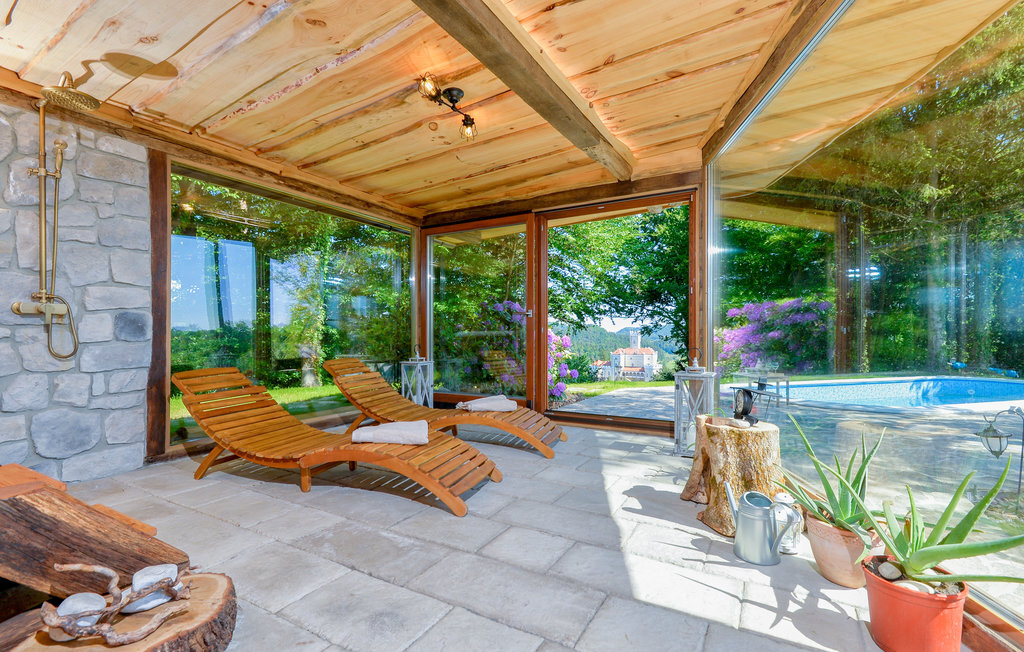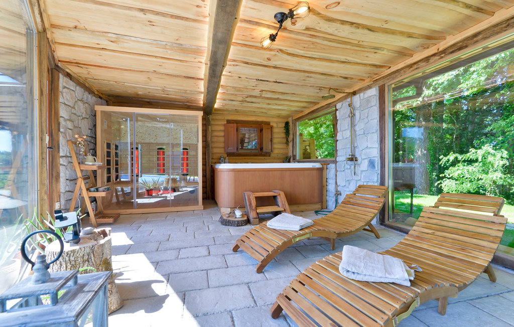 Bien-être à l'extérieur : Location de vacances disposant de chaises-longues et d'un ou plusieurs équipements tels que piscine extérieure, jacuzzi extérieur, lit à baldaquin de jardin etc...