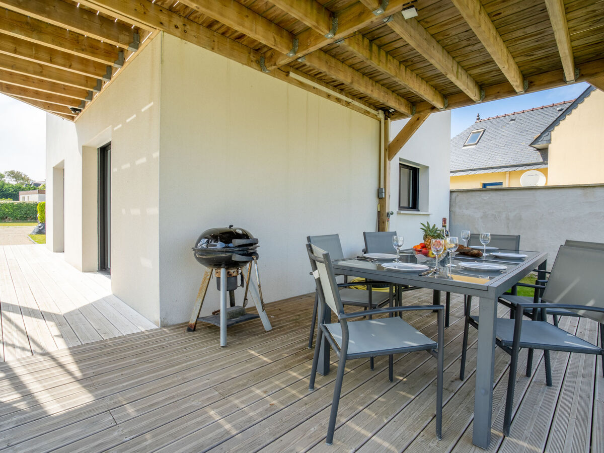 Meubles de terrasse, barbecue (portable), chaises longues (2), réduit.