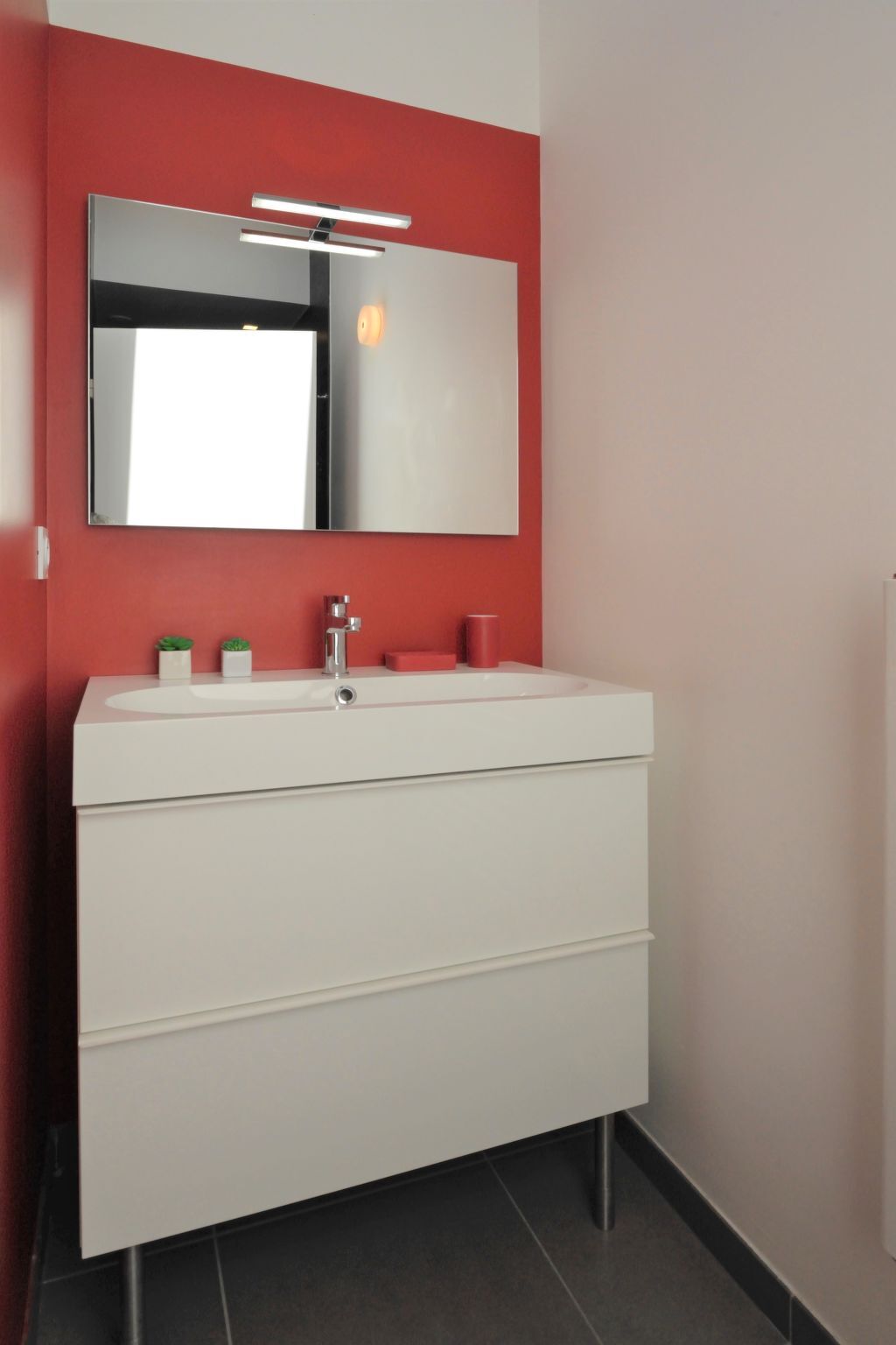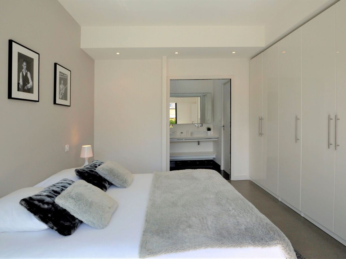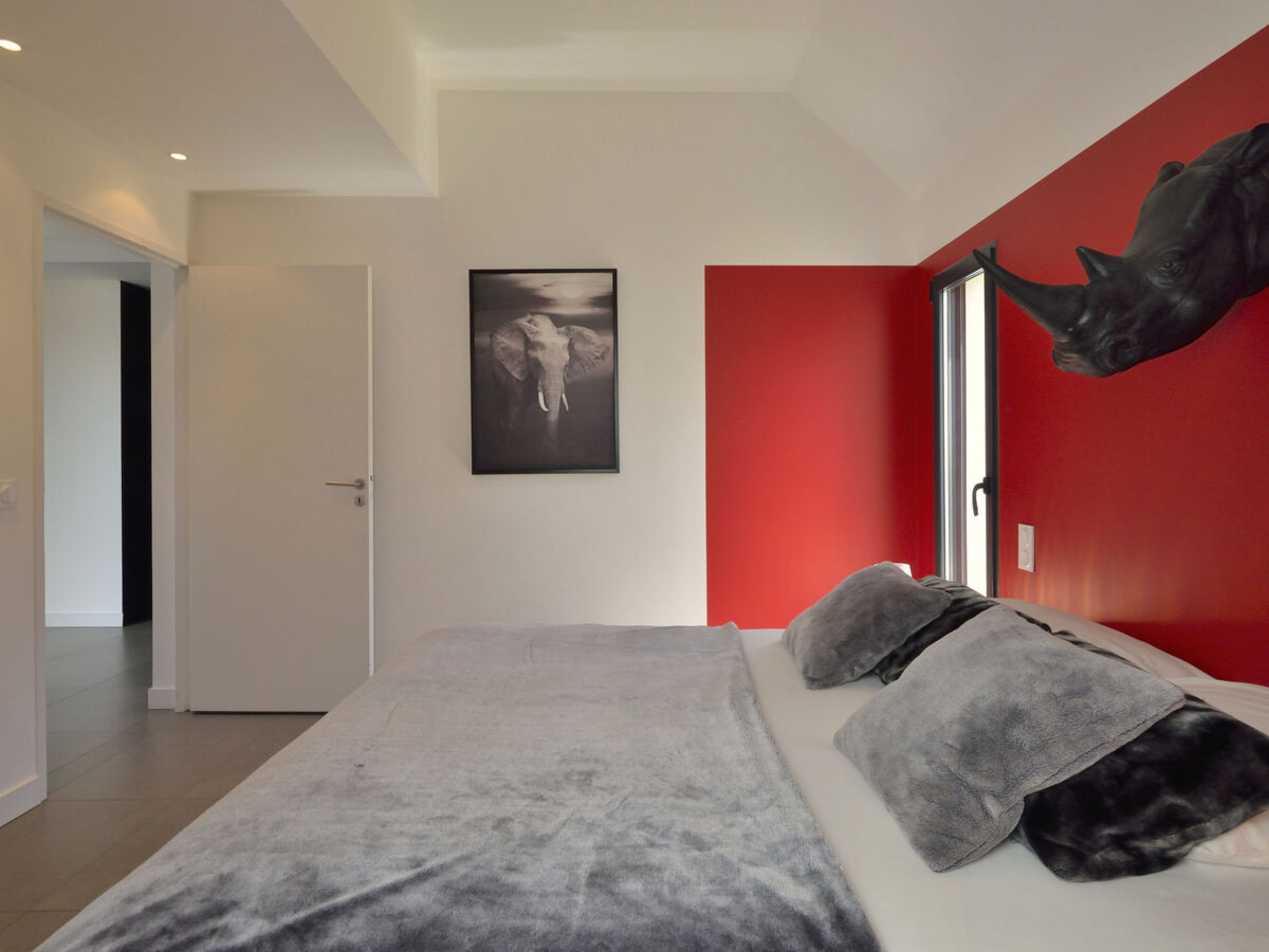 1 chambre avec 1 grand-lit (160 cm, longueur 200 cm), douche/WC et double vasque.