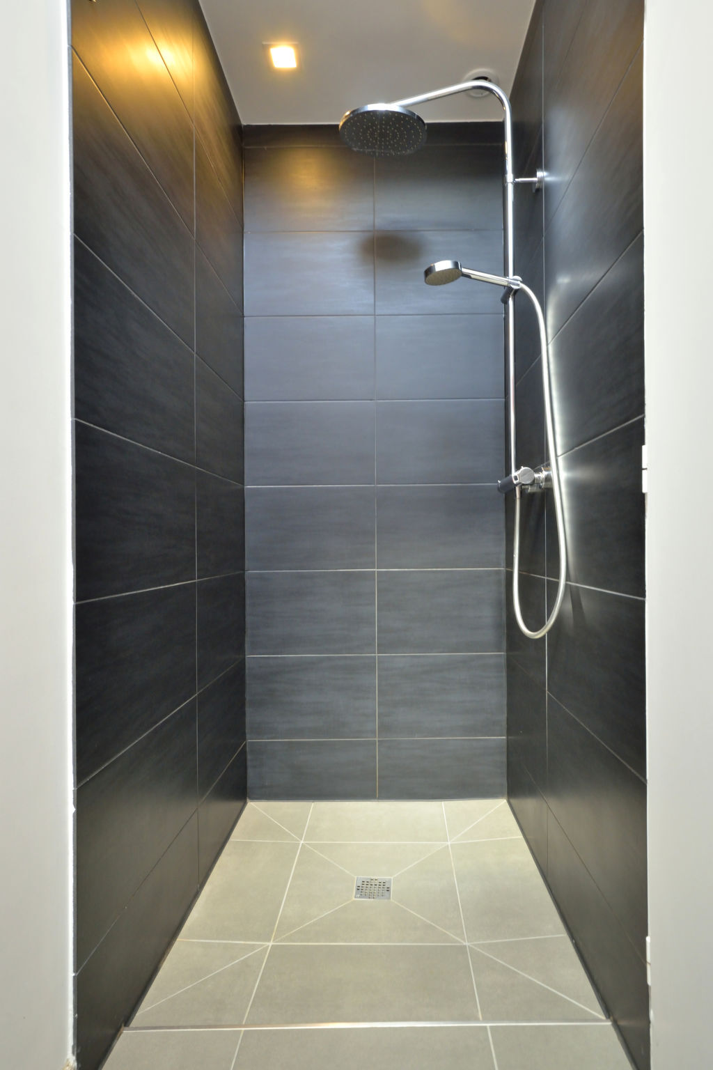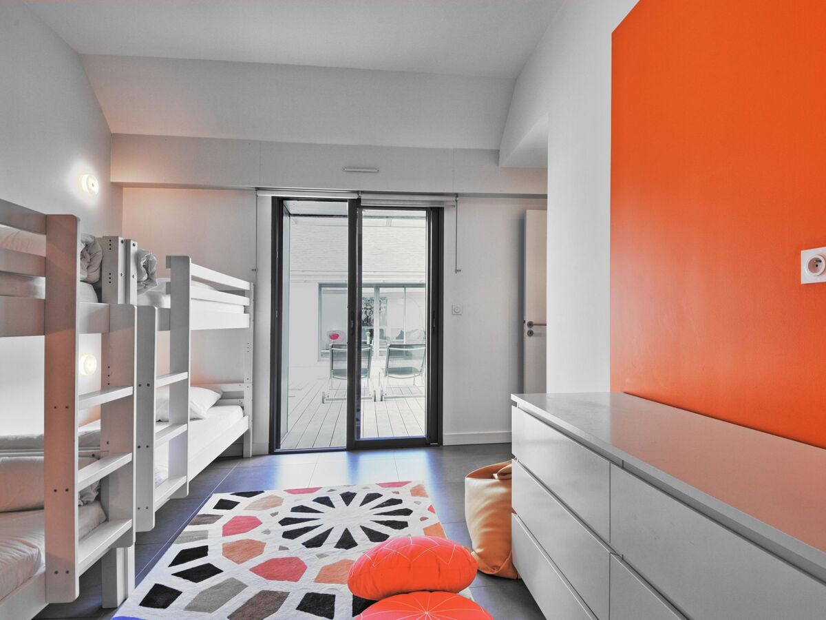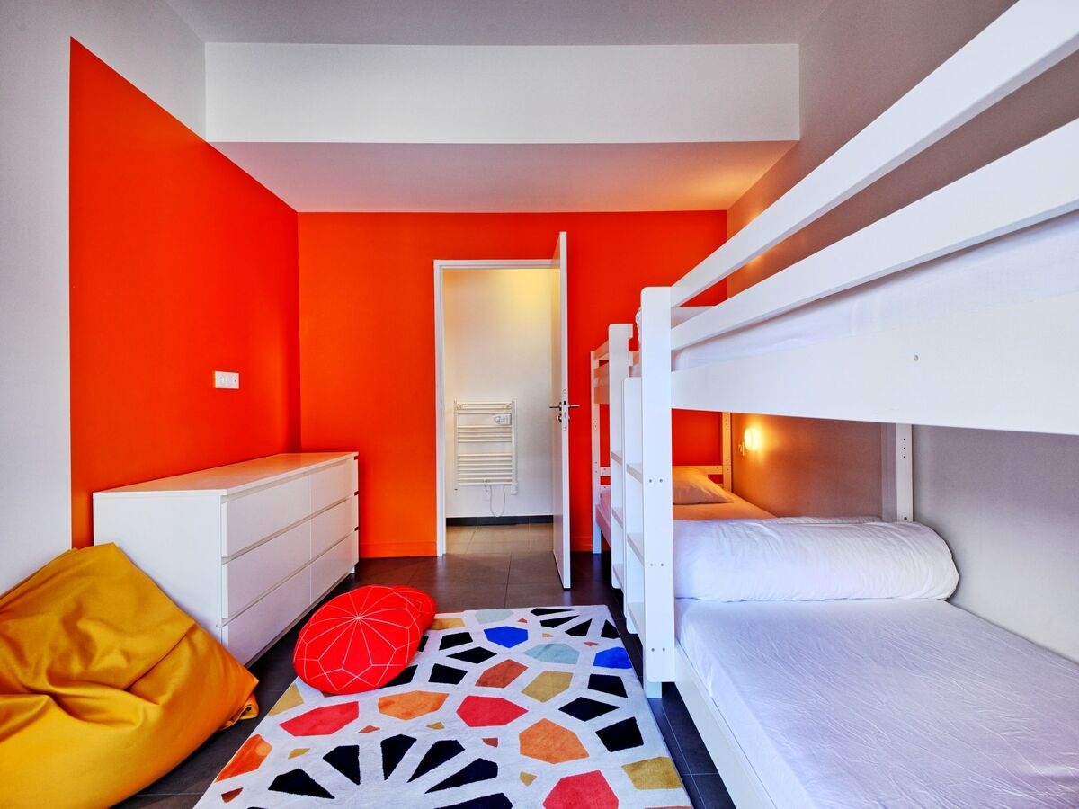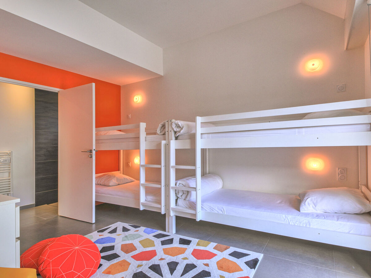 1 chambre avec 2 x 2 lits superposés (90 cm, longueur 190 cm), lavabo et douche.