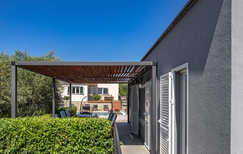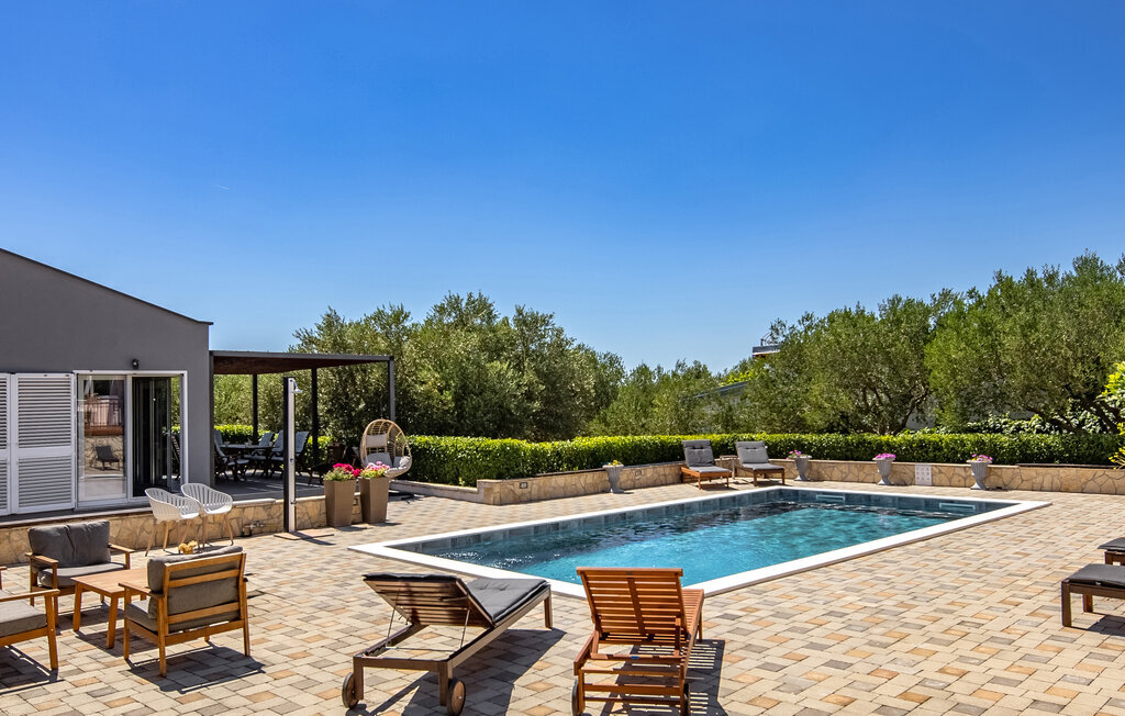 Bien-être à l'extérieur : Location de vacances disposant de chaises-longues et d'un ou plusieurs équipements tels que piscine extérieure, jacuzzi extérieur, lit à baldaquin de jardin etc...