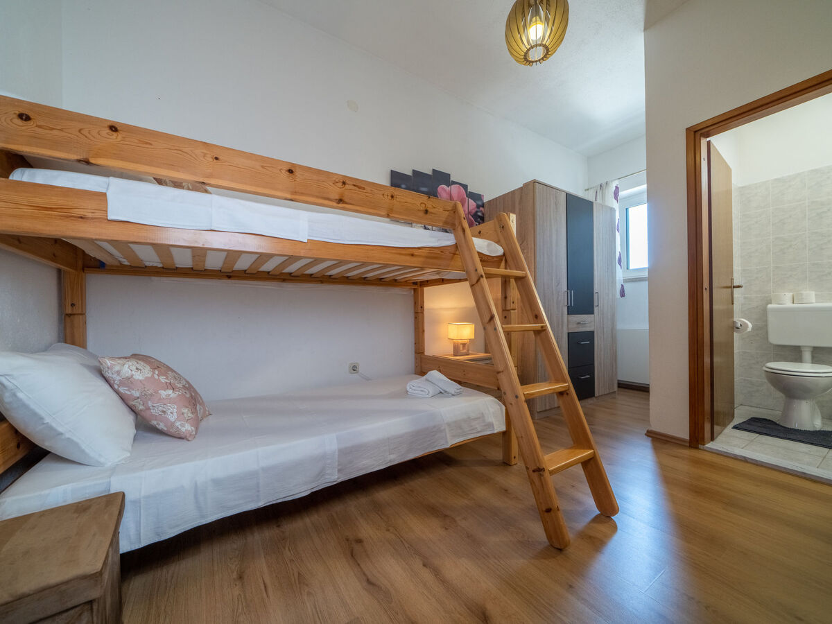 1 chambre avec 1 x 2 lits superposés (90 cm, longueur 200 cm), douche/WC.