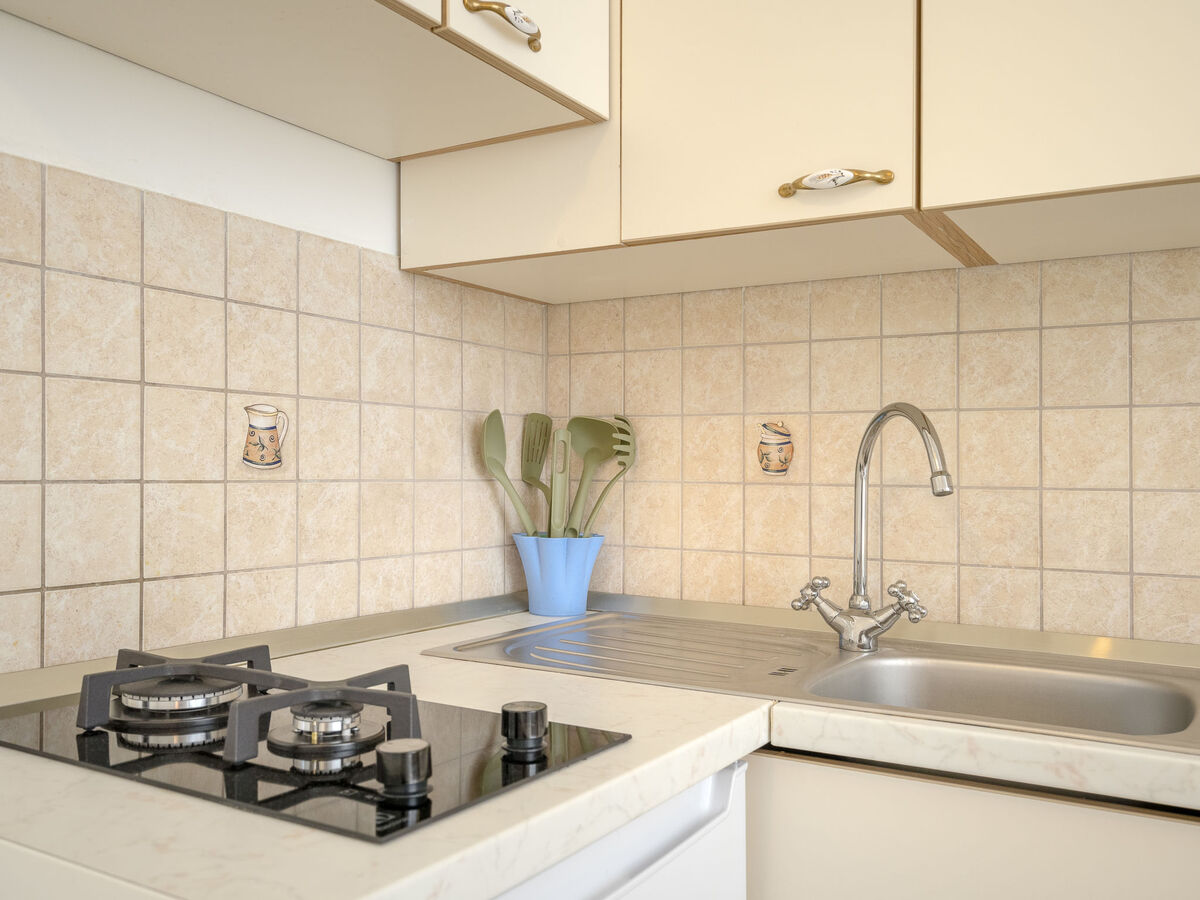 Cuisine ouverte (2 plaques de cuisson) avec table pour les repas.
