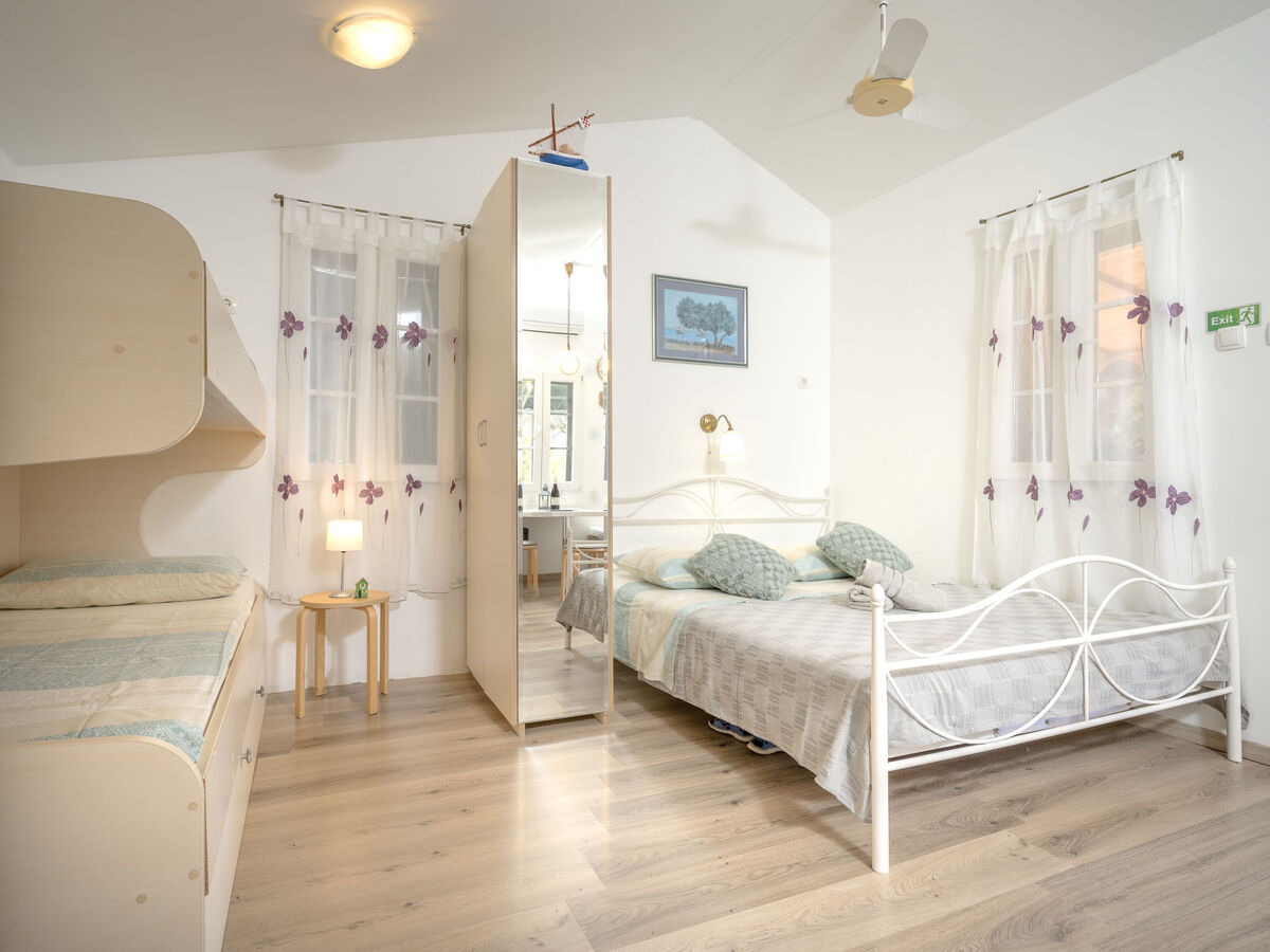 Séjour/chambre à coucher avec 1 x 2 lits superposés (80 cm, longueur 200 cm), 1 grand-lit (160 cm, longueur 200 cm), TV (satellite) (écran plat), air-conditionné.