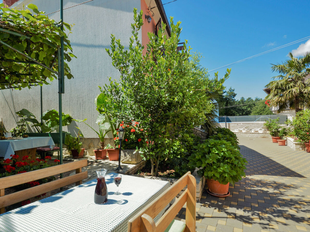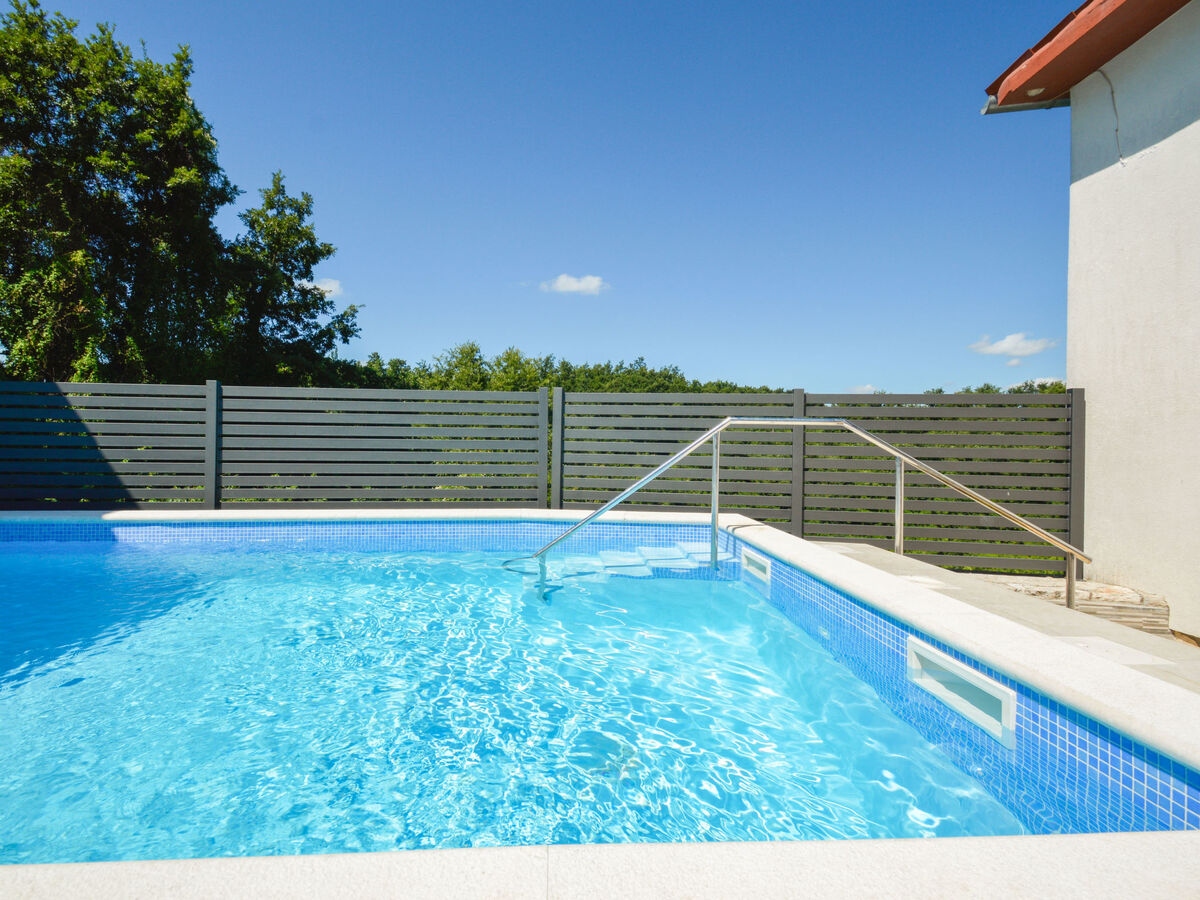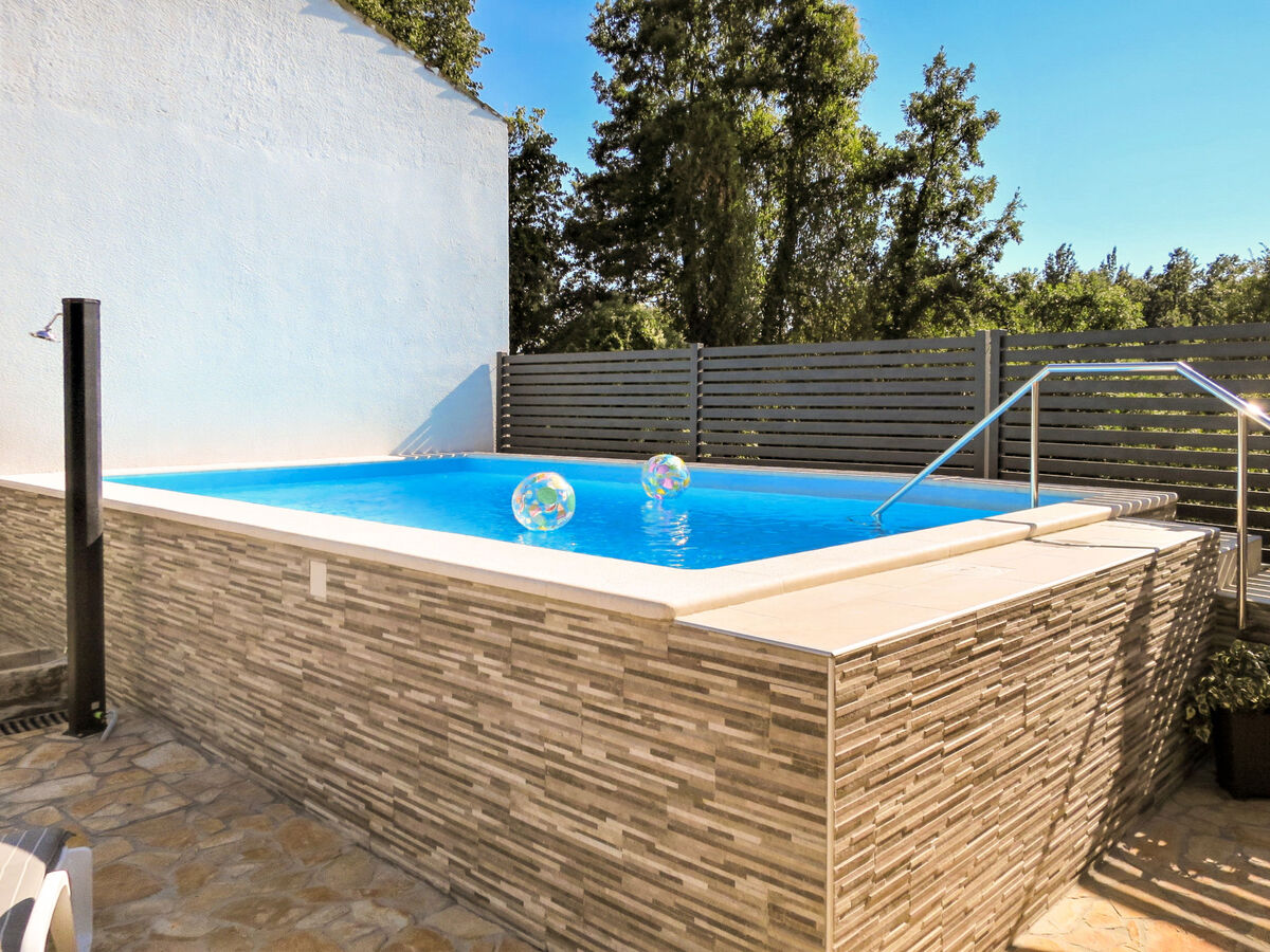 En commun: terrain 400 m2, jardin avec plantes et arbres, piscine (7 x 3 m, 24 m2, profondeur 130 cm, disponibilité saisonnière: 01.Mai.
