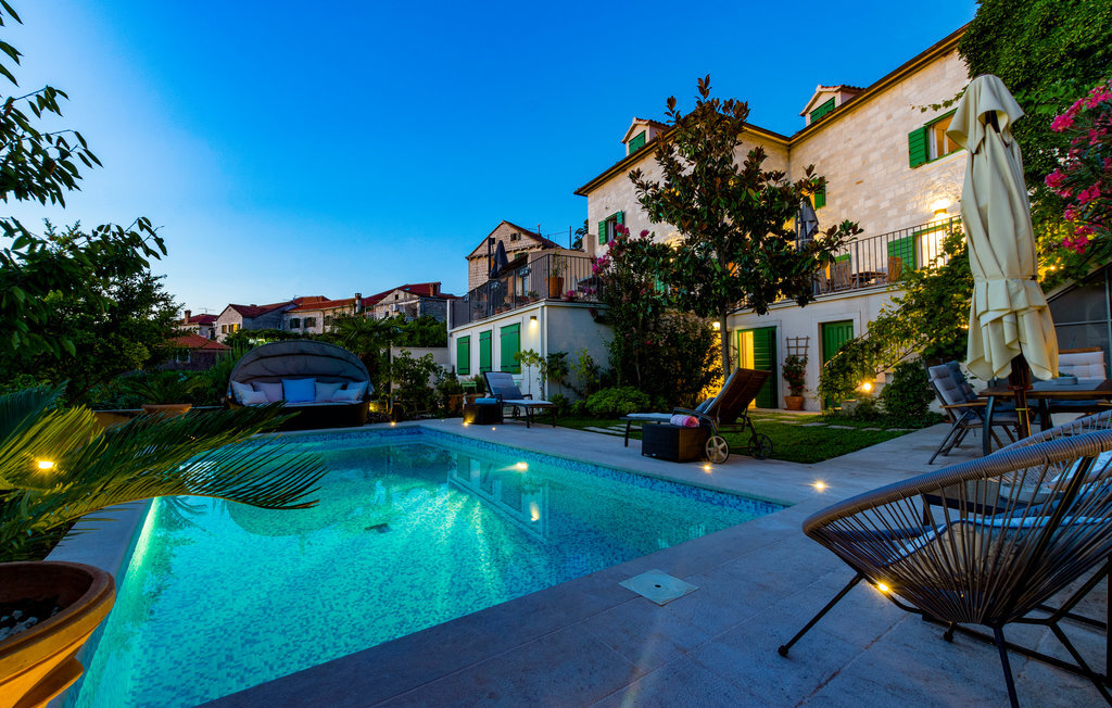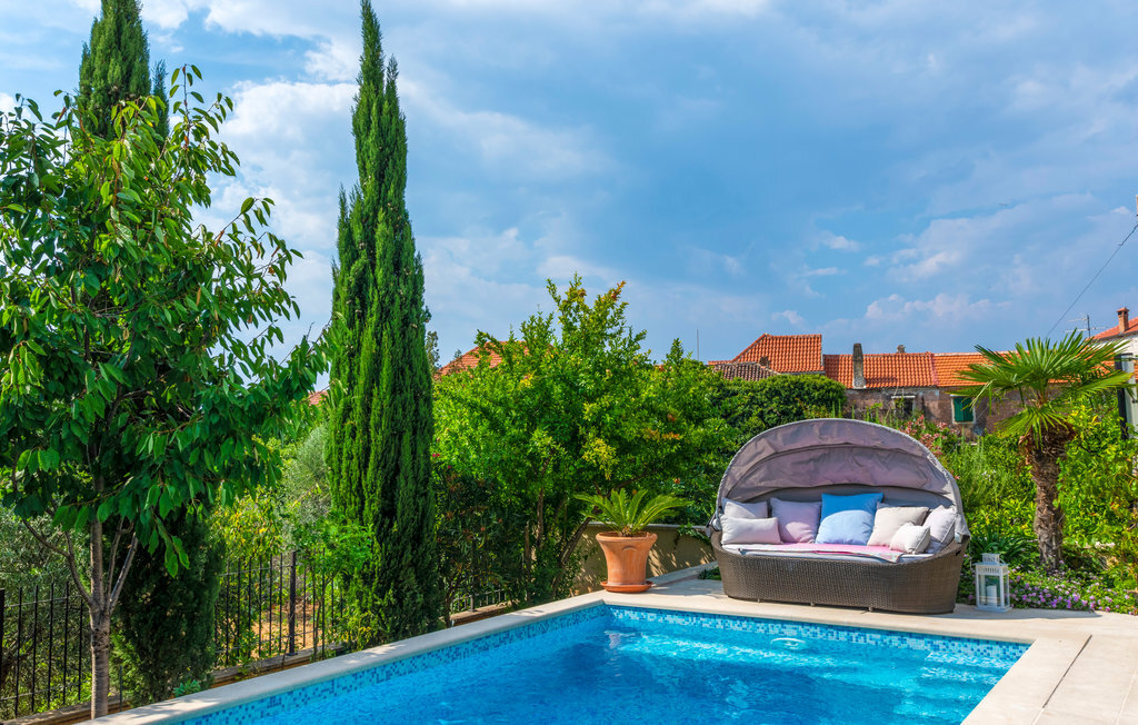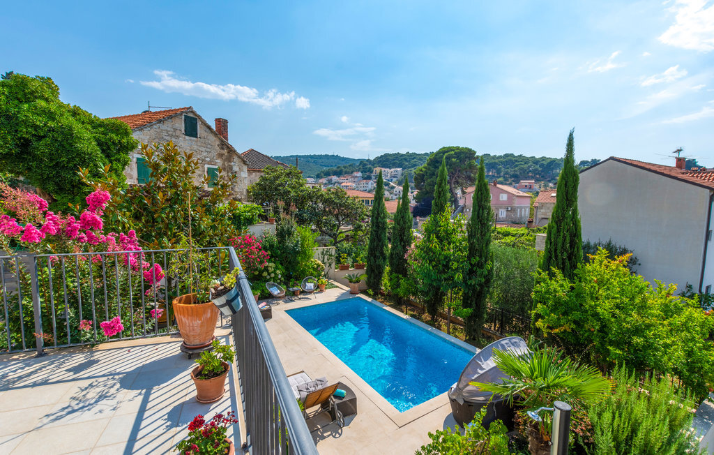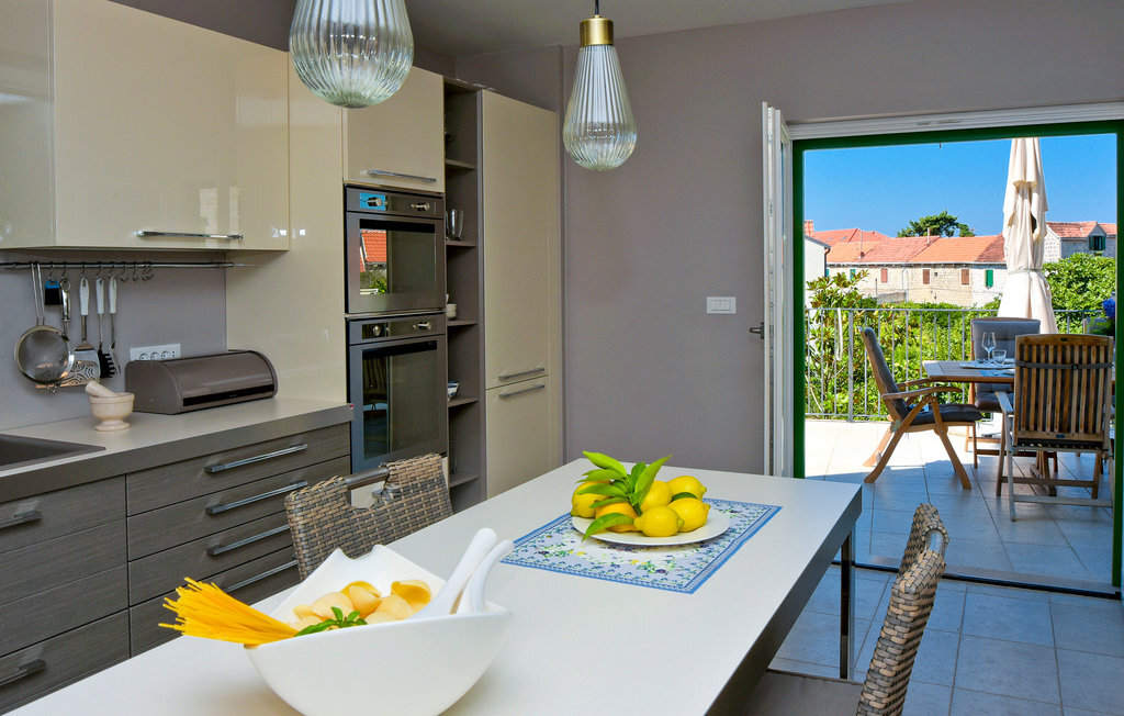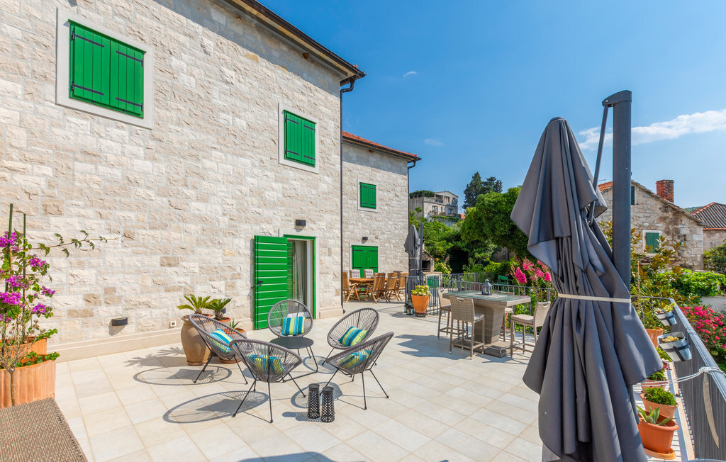 Superbe maison de vacances avec piscine, quatre chambres et quatre salles de bains. C'est un excellent choix pour passer des vacances inoubliables en famille avec des enfants ou en groupe d'amis. Située sur l'île de Bra, dans le village de Postira, elle offre un confort exceptionnel avec de beaux aménagements intérieurs et extérieurs. La propriété est située près de la mer et du centre-ville, de sorte que les magasins, les restaurants, les marchés, la pharmacie, la clinique et l'aire de jeux pour enfants sont à portée de main. Au rez-de-chaussée de près de 100 m² se trouve une cuisine avec coin repas qui communique avec le grand salon. De là, on accède à la terrasse spacieuse, équipée d'agréables meubles de jardin et offrant une vue sur la piscine et le jardin joliment aménagé. Au premier étage se trouvent les chambres à coucher, dont les chambres 1 et 4 ont leur propre salle de bain. Dans le jardin avec des plantes méditerranéennes et beaucoup de verdure, il y a également un barbecue sur lequel vous pouvez préparer de délicieux repas et profiter de l'air frais en toute convivialité. Au sous-sol de la maison, accessible par des escaliers extérieurs, une authentique konoba dalmate avec cheminée et cuisine entièrement équipée est à votre disposition. Il est recommandé de visiter la célèbre baie de sable de Lovreina, située à environ 2 km, ainsi que la plage la plus célèbre de Dalmatie, Zlatni Rat à Bol.