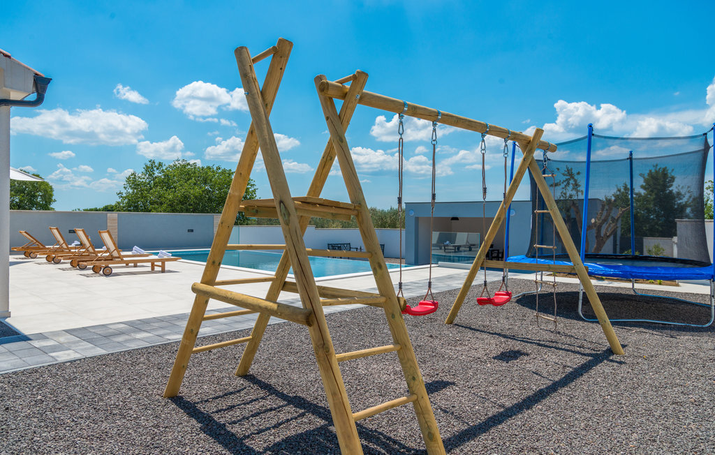 Fantastique maison de vacances avec piscine à débordement et lampes aux couleurs changeantes qui créent un jeu de lumière harmonieux le soir. La maison se trouve sur un terrain d'environ 930 m². Les chambres sont équipées de fenêtres françaises et offrent une belle vue sur les environs. Profitez avec toute la famille du luxe d'une salle de séjour séparée, entièrement équipée d'une cheminée, d'une table, de chaises et de toilettes supplémentaires. Vous pourrez y préparer des grillades, tandis qu'un foyer extérieur vous servira de lieu de rencontre idéal.