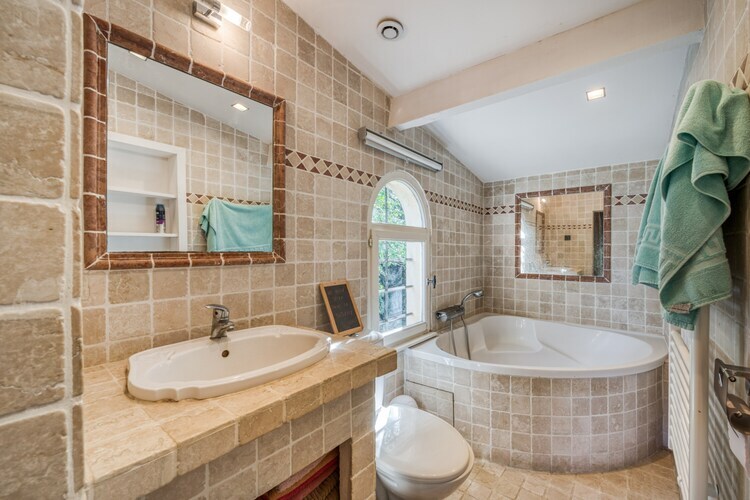 Rez-de-chaussée: (hall d'entrée, cuisine(foyer(3 foyers, électrique), bouilloire, cafetière/percolateur(cups), four, micro ondes, lave-vaisselle , combinaison réfrigérateur/congélateur), salle à manger-salon(TV, table, coin salon), chambre(Lit superposé, Lit superposé, TV), chambre(lit double(150 x 200 cm), TV), chambre avec salle de bains(lit double(180 x 200 cm), TV, baignoire, lavabo, WC, sèche-cheveux), chambre avec salle de bains(Lit superposé, TV, douche, lavabo, WC), salle de bains(sèche-linge, douche, 2x lavabo, WC, lave-linge )) terrasse, jardin, mobilier de jardin, transats, parking, parasol, piscine(privé, bâche, 9 x 5 m.), terrain de pétanque, tennis de table/ping-pong, salon de jardin, plancha