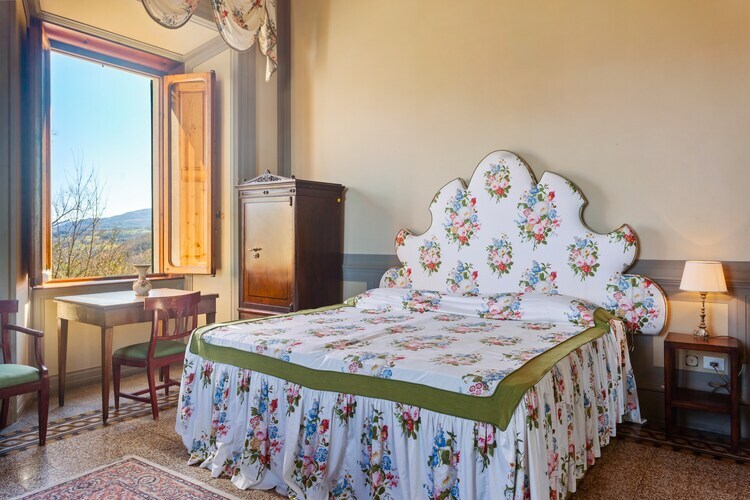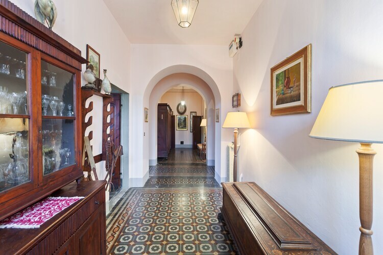 Belle maison de campagne datant de 1900 dans un endroit très calme avec vue panoramique sur la campagne et les collines environnantes, située à env. À 3 km de Borgo San Lorenzo. Un grand parc avec piscine privée (6x12) est à votre disposition. La maison est idéale pour ceux qui rêvent de vacances reposantes et paisibles en contact avec la nature mais qui souhaitent en même temps visiter les belles villes d'art, les villages caractéristiques et les nombreuses beautés de la Toscane. A côté de la piscine il y a une annexe avec salon (cheminée), coin repas (table pour 6 personnes), petite kitchenette et salle de bain avec douche. La piscine est située à env. A 100 m du logement, à proximité de la maison du jardinier, qui habite à l'intérieur de la propriété et s'occupe de l'entretien. Sur la tour il y a une terrasse panoramique. Le mobilier se compose principalement de meubles anciens. Florence 30 km (facilement accessible également en train depuis Borgo San Lorenzo), Sienne 90 km, Pise 100 km.