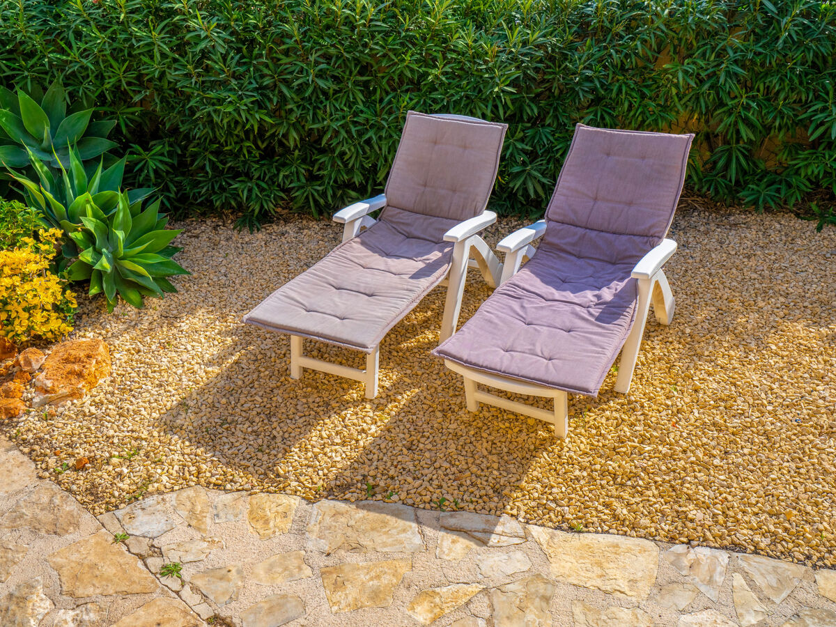 Meubles de terrasse, barbecue, chaises longues.
