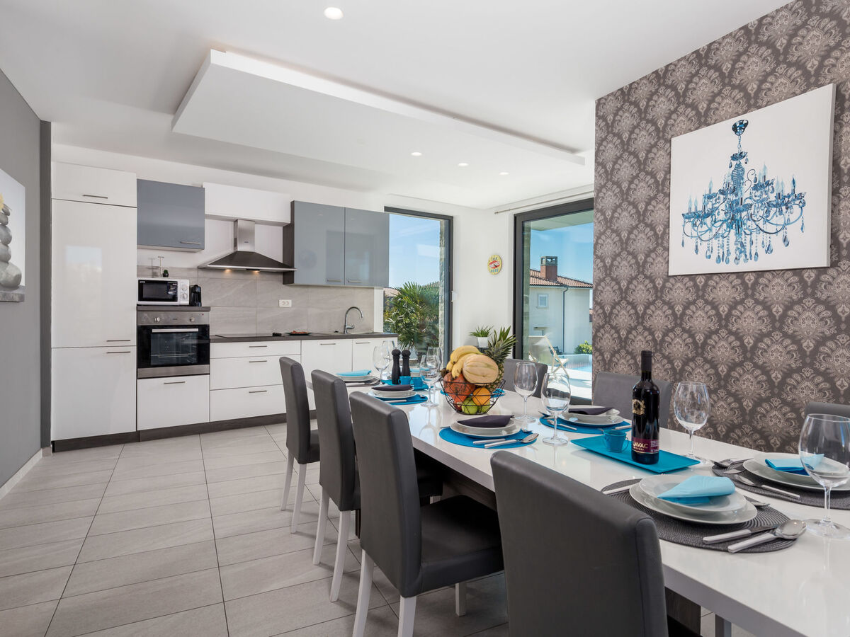 Cuisine ouverte (four, lave-vaisselle, 4 plaques vitrocéramiques, micro-ondes, congélateur, cafetière électrique).