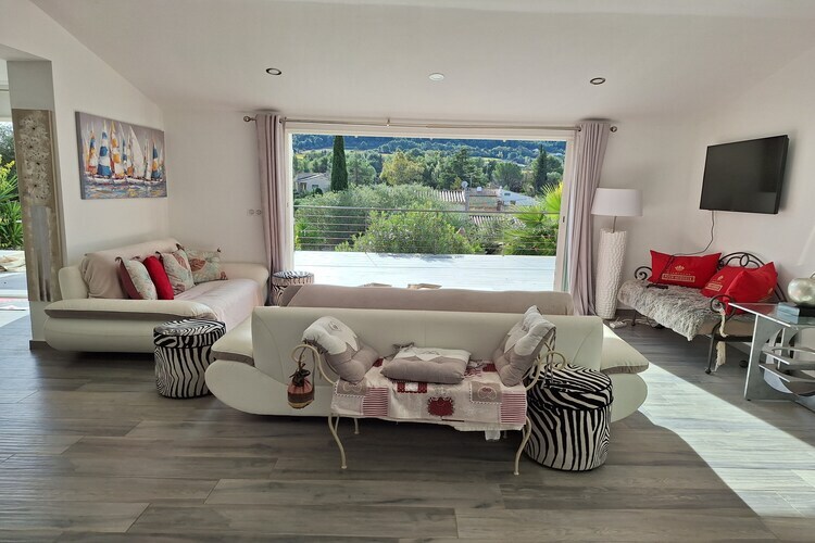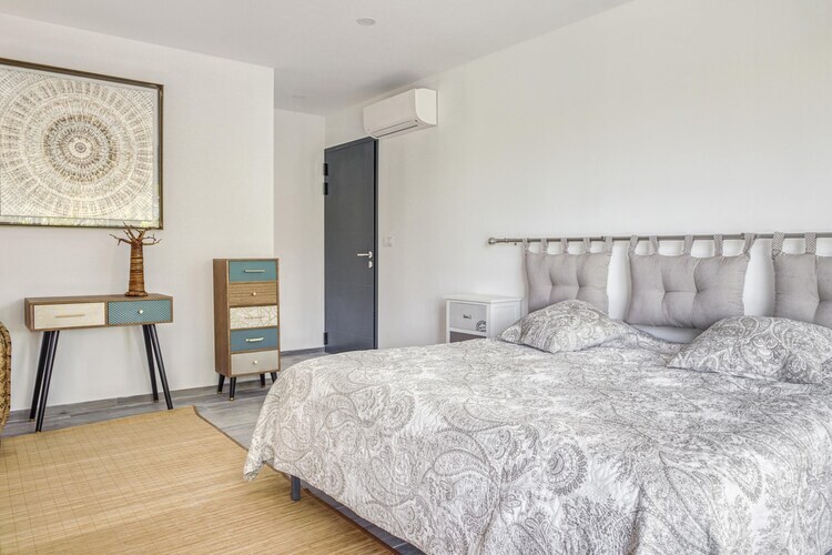 Rez-de-chaussée: (Salle de séjour(coin salon), salle à manger(table, table), cuisine ouverte(foyer, bouilloire, plaque de cuisson, micro ondes, combinaison réfrigérateur/congélateur), chambre(lit double), chambre(lit double), chambre avec salle de bains(lit double), salle de bains(lavabo, WC, urinoir), WC(WC, urinoir, lave-linge ), bibliothèque, baignoire, climatisation) Dépendance: (chambre avec salle de bains(35 m2)(lit double), climatisation) cuisine d'été, barbecue, piscine(privé, 12 x 6 m.)