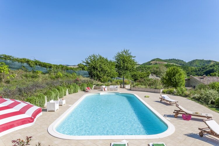 Le logement dispose de 3 chambres, pouvant accueillir jusqu'à 10 personnes.Idéal pour les familles ou un groupe d'amis, il offre un porche extérieur privé avec four à bois et barbecue et table et chaises pour manger à l'extérieur, un jardin avec un "grand espace commun piscine avec vue sur le paysage typique des Marches, ainsi qu'un boulodrome.