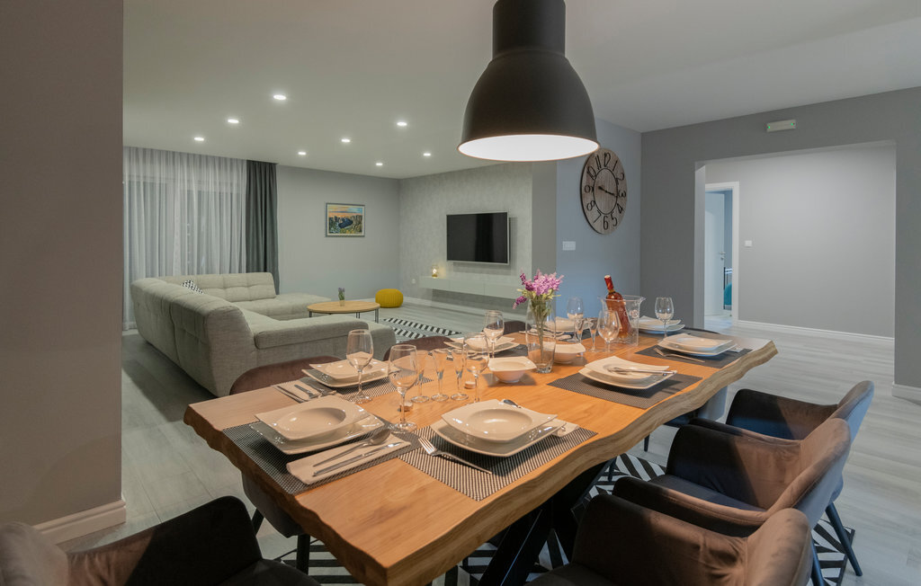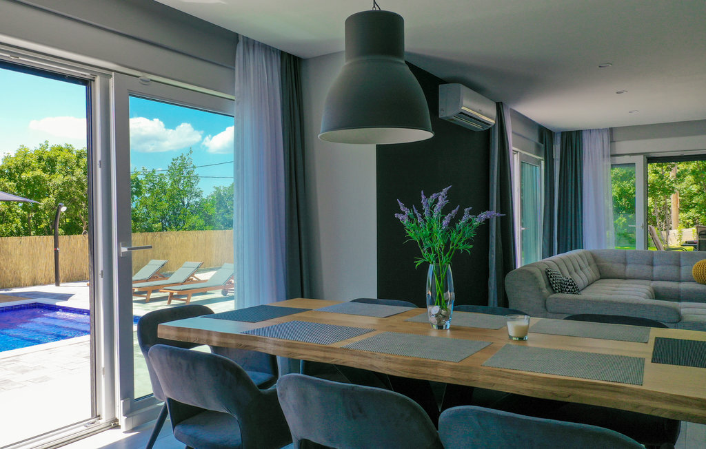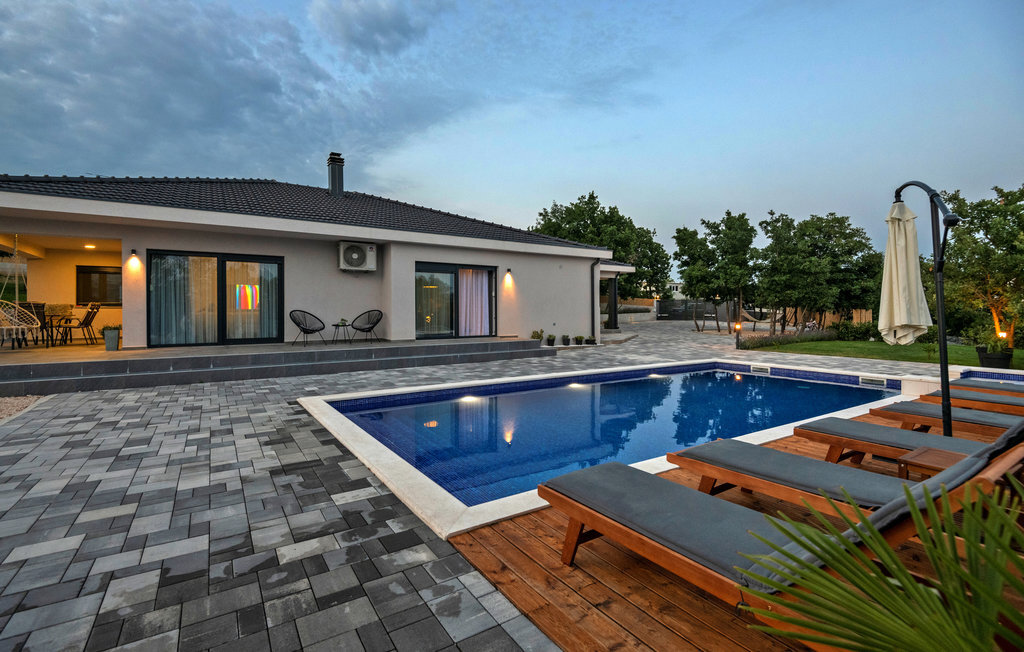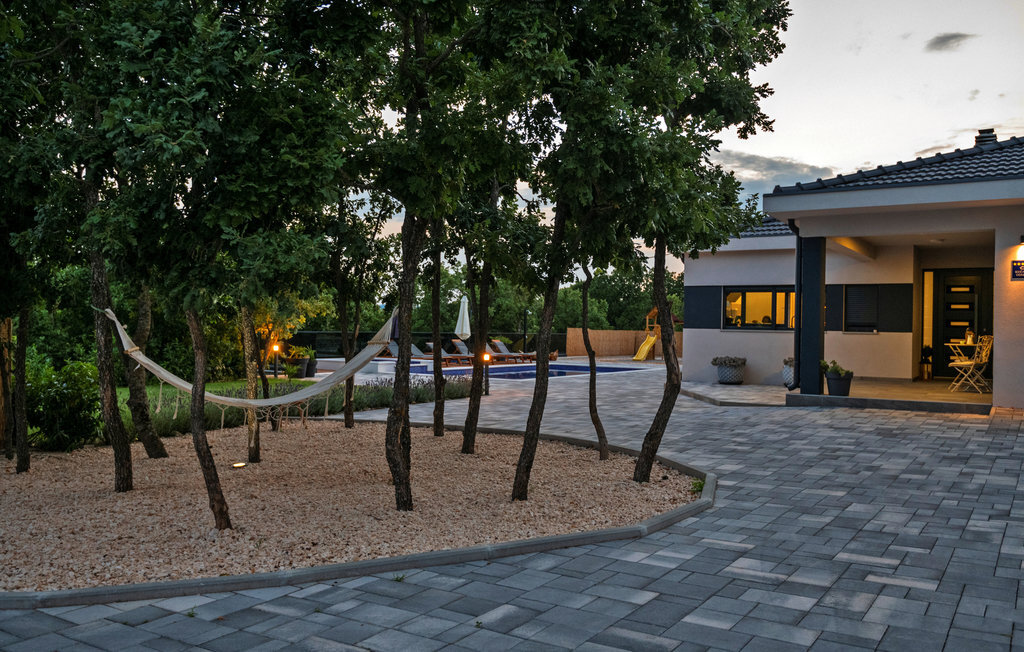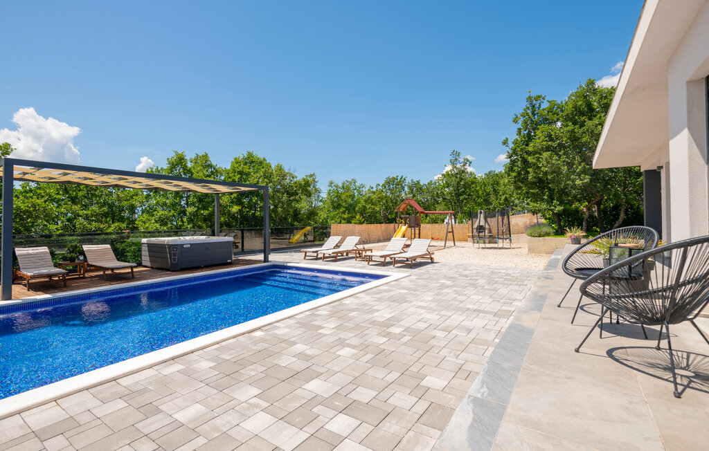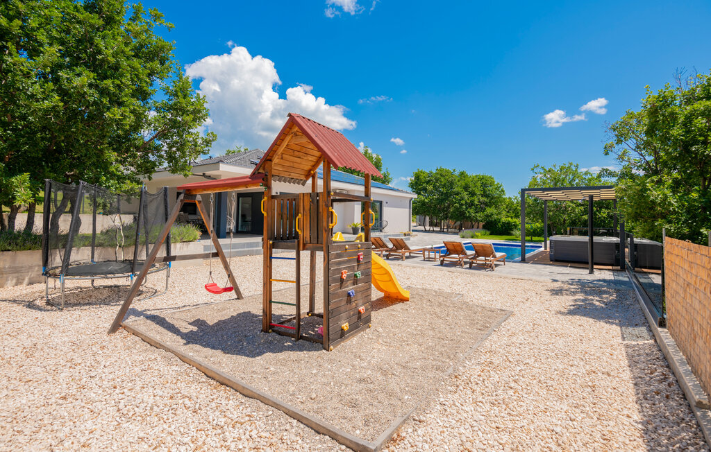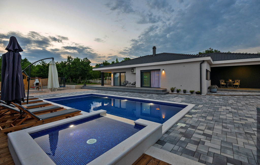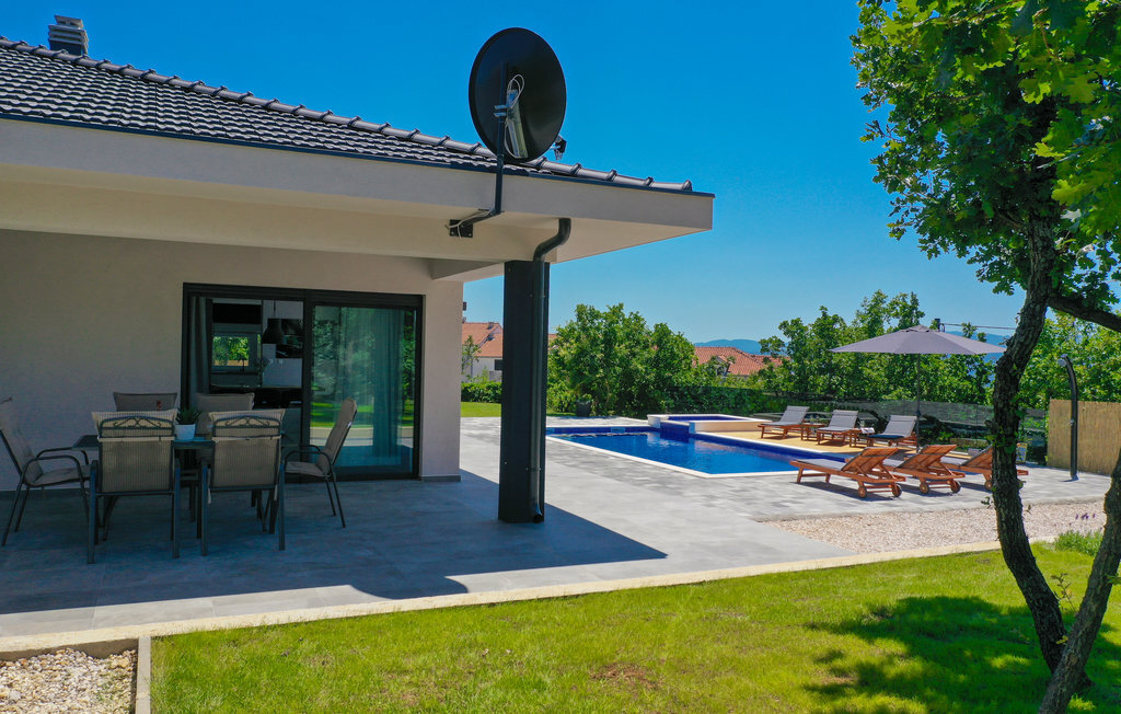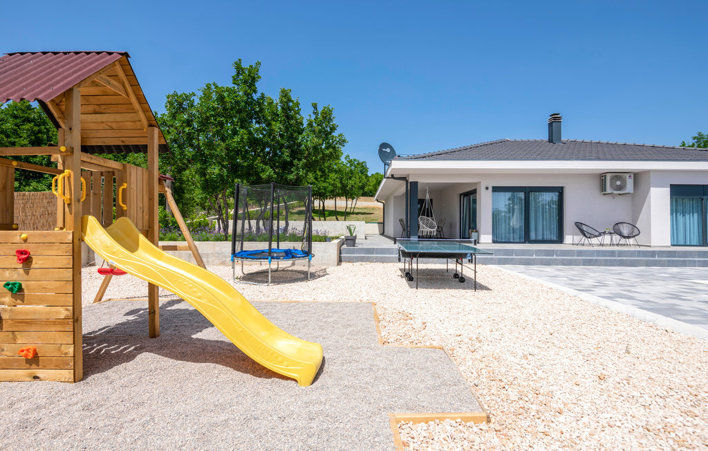 Excellente maison de vacances située sur un vaste terrain, au-dessus de la ville d'Imotski. Cette maison de plain-pied offre tout ce qui peut rendre les vacances reposantes et agréables pour vous et votre famille. Devant la maison se trouve une piscine avec bassin pour enfants, qui vous rafraîchira lors des chaudes journées d'été. Juste à côté, une terrasse couverte avec barbecue est à votre disposition. Les équipements de loisirs tels que le billard, le baby-foot, le ping-pong et les appareils d'entraînement dans la salle de séjour permettent de se divertir davantage. Pendant ce temps, les plus petits peuvent s'amuser sur l'aire de jeux. L'emplacement de la maison, non loin de beaux lacs et de pistes cyclables et de randonnée, est idéal pour des activités et des promenades supplémentaires. Visitez également la ville d'Imotski, où de nombreuses manifestations sont organisées pendant les mois d'été. Les plages de galets de la Makarska Riviera sont à environ une demi-heure de route.