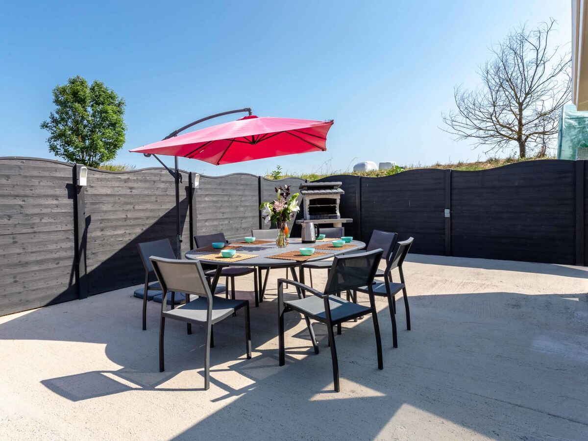 Meubles de terrasse, barbecue (portable), chaises longues (8), réduit.