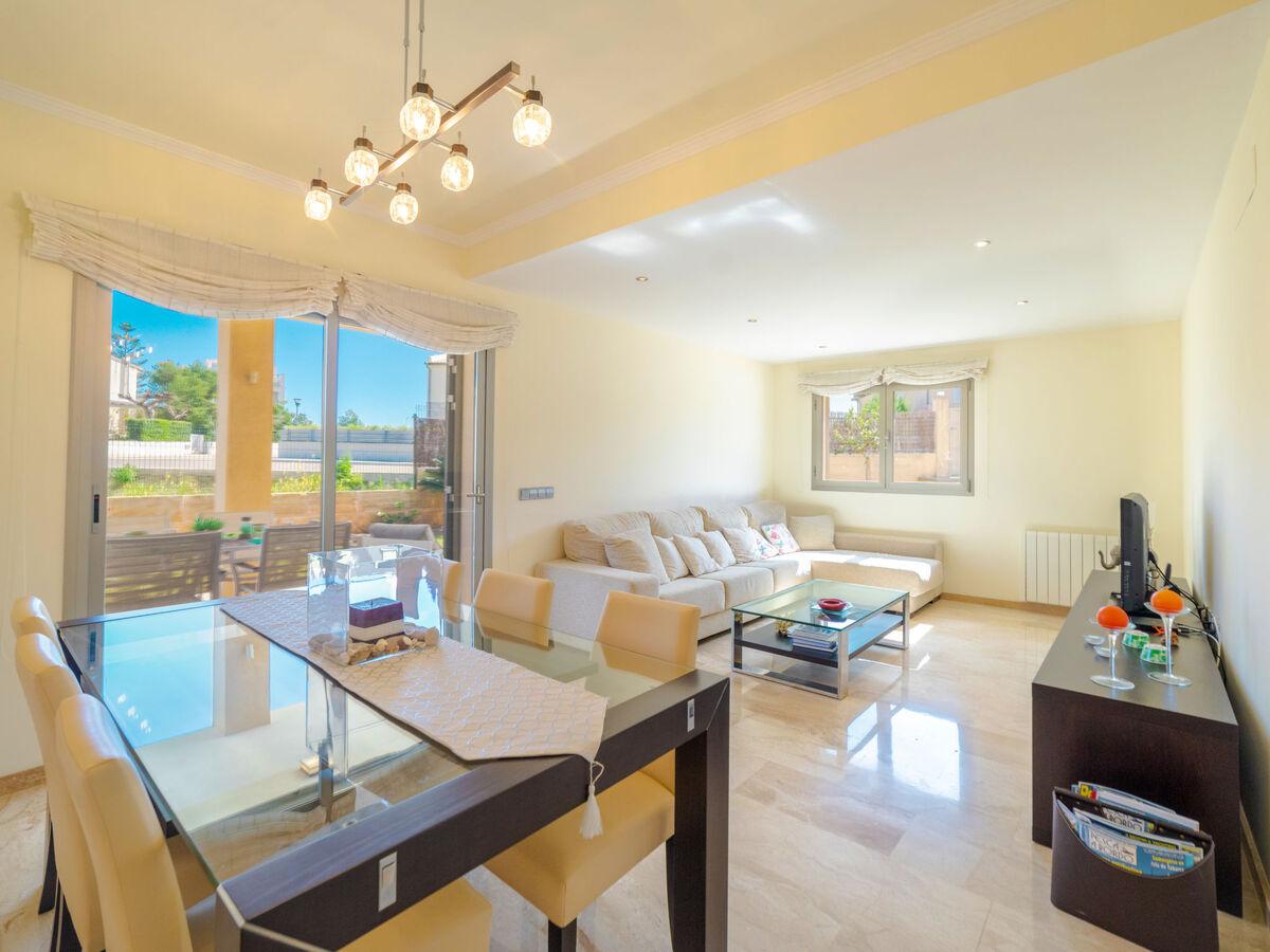 Spacieux et clair, aménagement très confortable et agréable: grand séjour/salle à manger avec baie vitrée avec table pour les repas, TV et écran plat.