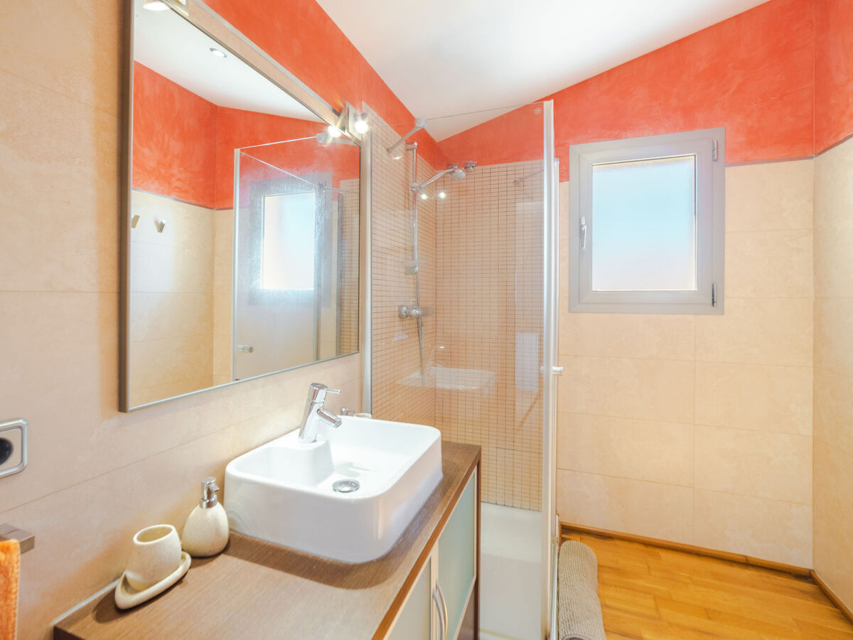 À l'étage supérieur: 1 grande chambre double avec baie vitrée Dressing avec 1 grand-lit (200 cm, longueur 200 cm), douche/WC, TV, écran plat, air-conditionné et chauffage à air chaud.
