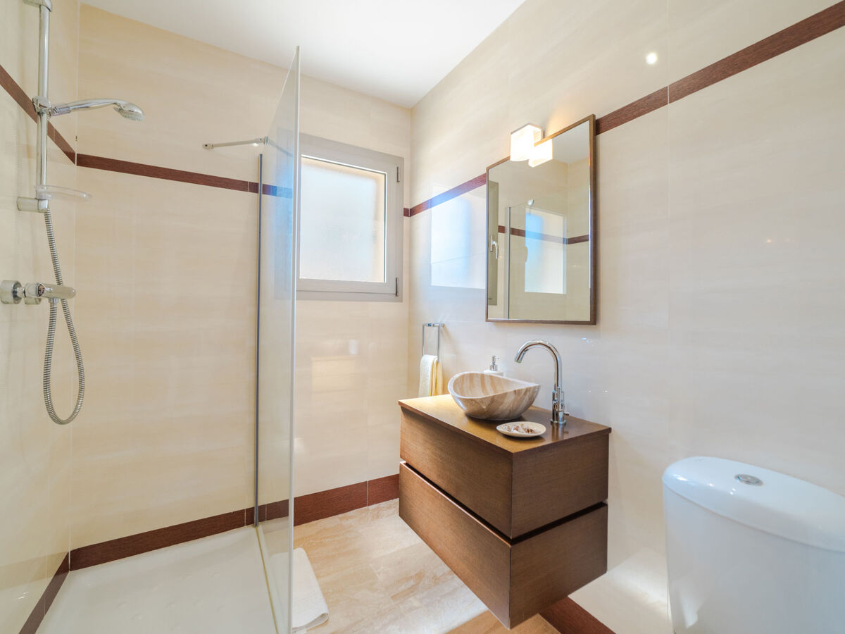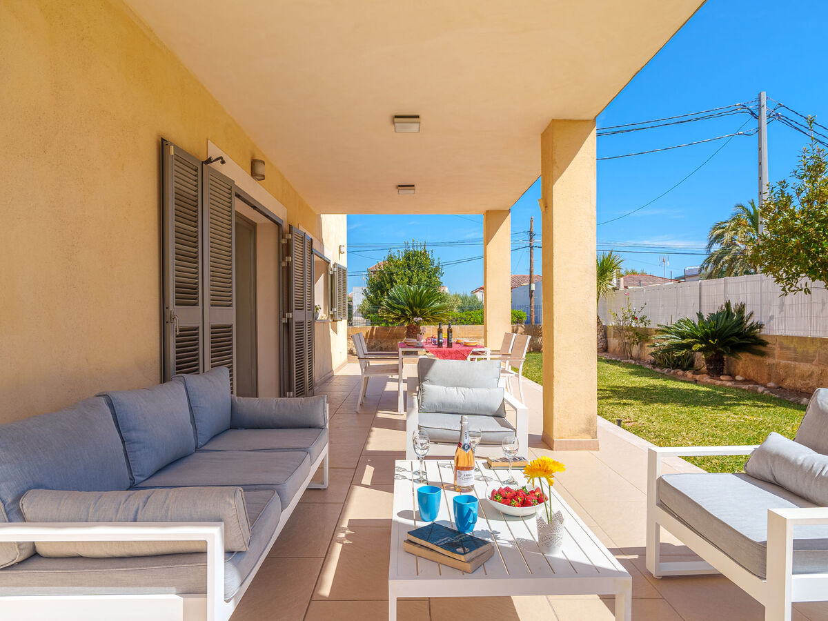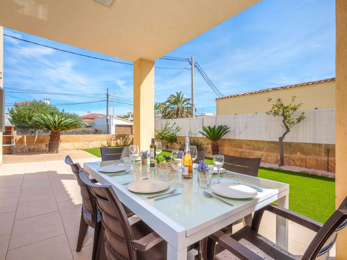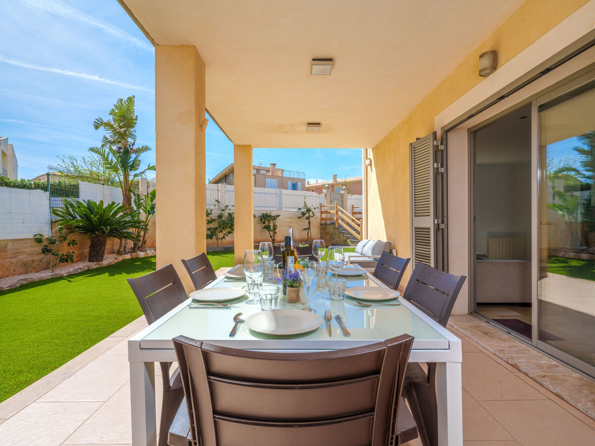 Magasins 1 km, supermarché 1.2 km, centre commercial 45 km, restaurant 160 m, bar, zone piétonne 50 m, centre à 15 minutes à pieds, arrêt de bus 1.5 km, ferry 3 km, plage de sable "Platja Es Morer Vermell" 550 m, plage de rochers "Platja Es Barcarés" 60 m.