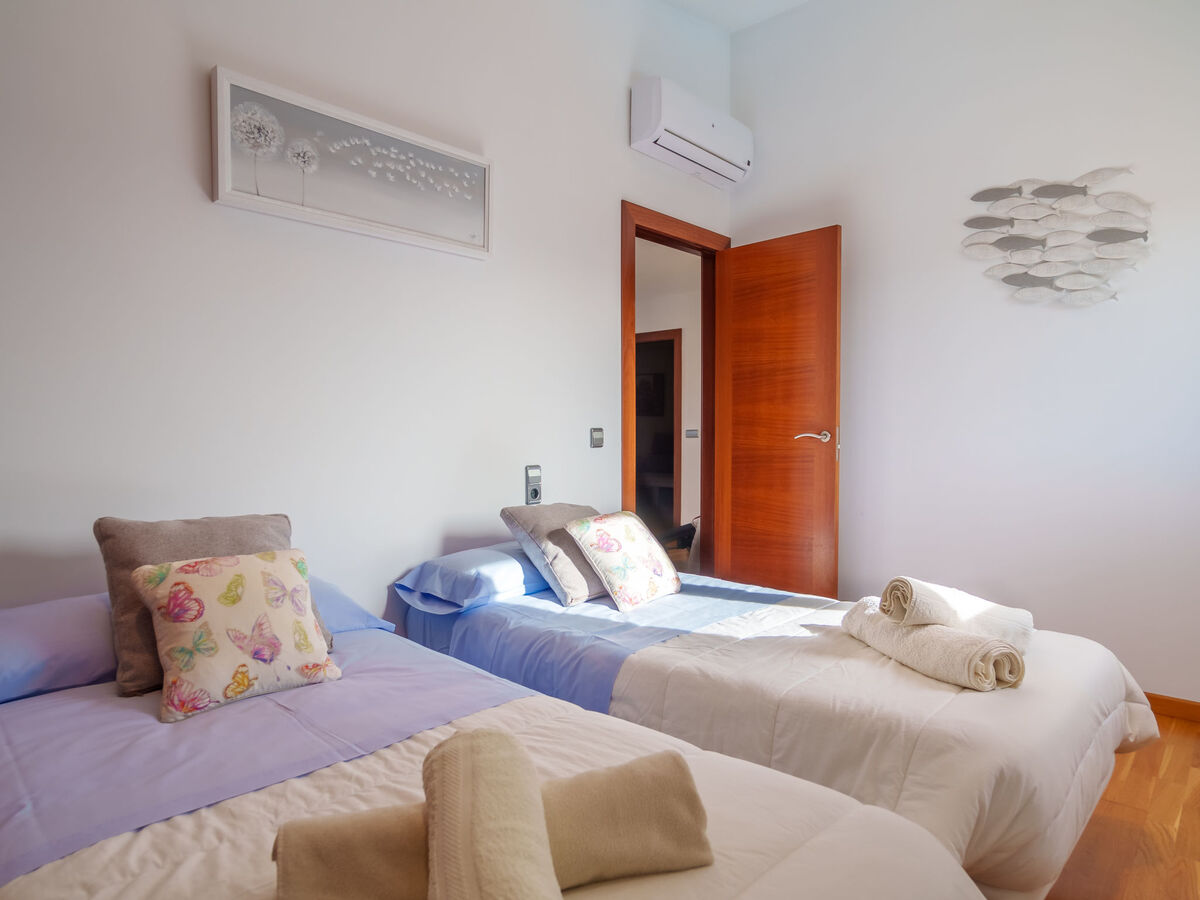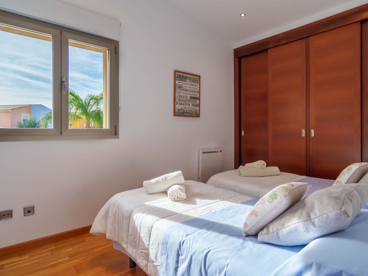 1 chambre double avec baie vitrée avec 2 lits (90 cm, longueur 190 cm), air-conditionné et chauffage à air chaud.
