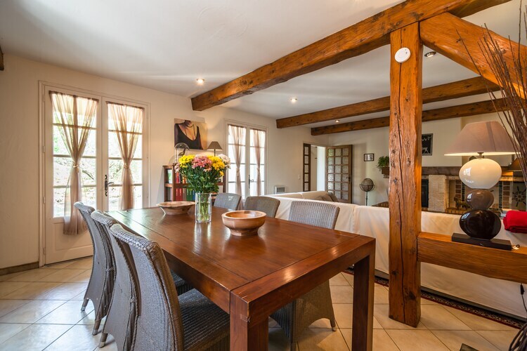 Rez-de-chaussée: (cuisine(foyer, bouilloire, grille-pain, cafetière/percolateur, four, micro ondes, lave-vaisselle ), salle à manger-salon(TV(satellite), table, cheminée, système de musique sans fil, installation stéréo), chambre(lit double(boxspring, 160 x 200 cm)), chambre(lit simple(90 x 200 cm), lit simple(90 x 200 cm)), chambre(lit simple(90 x 200 cm), lit simple(90 x 200 cm)), salle de bains(douche, lavabo), WC(WC), réserve(lave-linge , tennis de table/ping-pong, table à repasser, fer à repasser)) cuisine d'été, réfrigérateur(+ machine à glaçons, + congélateur, américain), terrasse(couverte), terrasse, jardin(privé, clôturé, aménagé, illuminé, 4000 m2), mobilier de jardin, barbecue(charbon de bois), parking, piscine(privé, 10 x 5 m.), terrain de pétanque, salon de jardin