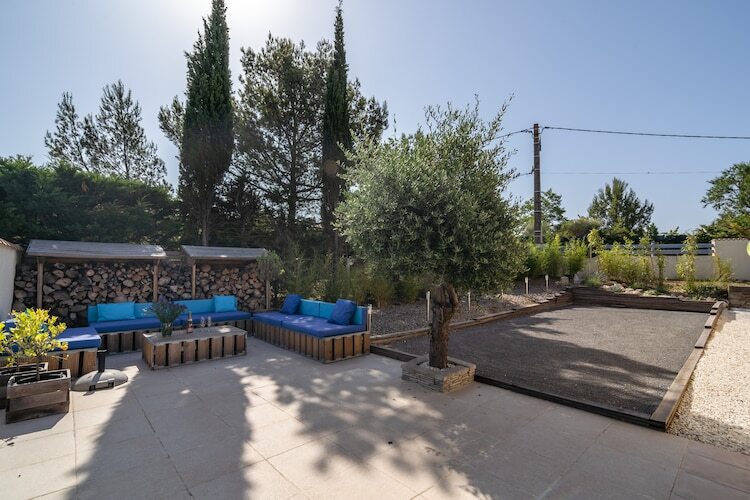 Vous trouverez à l'étage les coussins pour les sièges de salon et les boules de Pétanque ainsi que divers autres jouets autours de la piscine.