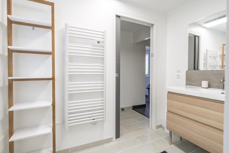 Rez-de-chaussée: (cuisine ouverte(foyer(4 foyers, gaz), grille-pain, cafetière/percolateur(pads), cafetière/percolateur, micro ondes, lave-vaisselle , combinaison réfrigérateur/congélateur), salle à manger-salon(TV, table(8 personnes), coin salon, Lecteur DVD), chambre(lit double(140 x 200 cm)), salle de bains(baignoire, douche, lavabo), WC(WC), réserve(lave-linge )) Au 1er étage: (chambre(Lit superposé), chambre(lit simple(90 x 190 cm), lit simple(90 x 190 cm)), salle de bains(baignoire sabot, lavabo, WC), WC(lavabo, WC)) table(8 personnes), terrasse, jardin, transats, barbecue(gaz), plancha