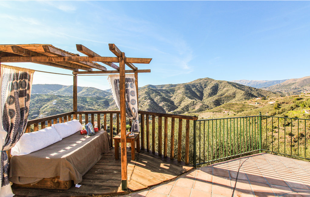 Bien-être à l'extérieur : Location de vacances disposant de chaises-longues et d'un ou plusieurs équipements tels que piscine extérieure, jacuzzi extérieur, lit à baldaquin de jardin etc...