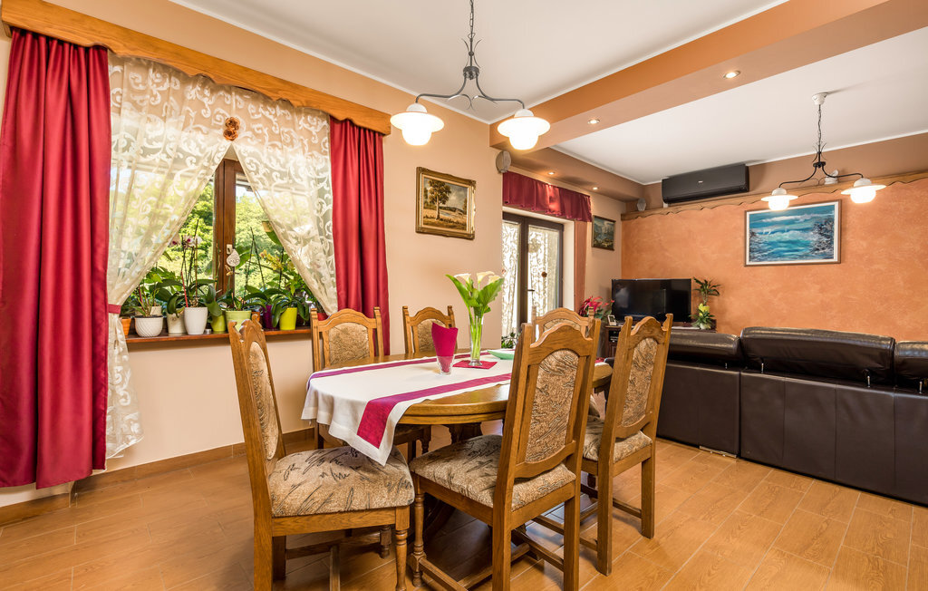 Passez des vacances inoubliables dans le petit village de Veli Brgud, dans l'arrière-pays de la célèbre Riviera d'Opatija. La maison de vacances avec piscine est la dernière du village et tout autour, vous profitez de la verdure de la nature, des champs, des prairies ainsi que d'un paysage forestier reposant. Le logement de vacances s'étend sur le rez-de-chaussée et a été aménagé avec beaucoup d'attention, ce qui lui confère un sentiment de confort. Outre un grand salon, il y a aussi deux chambres à coucher et une terrasse couverte à l'entrée de la maison. Détendez-vous sur ce grand terrain avec piscine et profitez de la combinaison du climat de mer et de montagne, avec des journées d'été chaudes et ensoleillées, ainsi que des nuits plus fraîches. Les environs sont idéaux pour les promenades, le vélo et les randonnées. Les vacanciers actifs peuvent visiter le parc naturel dans les montagnes d'Uka et vivre une charge d'adrénaline en faisant du parapente. Visitez également la Riviera d'Opatija, de belles plages de baignade, ainsi que le petit village historique de Kastav. Pour faire du shopping, rendez-vous dans la ville de Rijeka. La région de Kvarner est également connue pour ses excellents restaurants proposant une cuisine méditerranéenne exquise. Un point fort pour les gourmets.